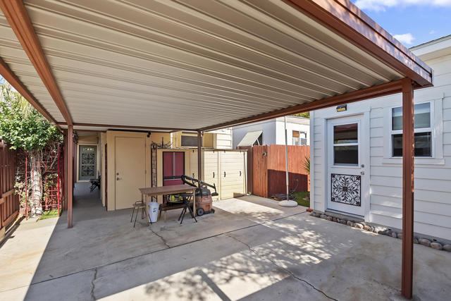 Five koi, signature art by local iconic Jeremy Novy and personally painted by him in 2021, welcome you through the gate into the courtyard of 4 Arapaho Street, which offers a unique blend of comfortable living with an open floor plan, fenced solitude on the edge of Ramon Mobile Park with the park's many community amenities, and a great location across the street from Ralphs, CVS and other stores, only 1.1 miles from Arenas road,0.9 from the Toolshed,2 miles from the airport. This one bedroom, one bath mobile home features a large open living/dining area, a 8' x 25' bonus room with a separate entrance that could be used as a large office or extra bedroom. Three mini-split air conditioning/heating units installed in 2021, keep this home comfortable year-round with energy efficiency. The kitchen has newer appliances, and most of the lighting was installed in 2021, including a space age chandelier in the living/dining area. There is a separate 12' x 8' structure, with windows and an AC, that can be used as-is for a home gym, adult playroom, or recording studio, and could easily be converted into an office or guest room. There is a washer/dryer in a locking cabinet on the patio. The carport provides covered parking for one vehicle, an outlet for charging an EV or plug-in hybrid, and locked storage cabinets. The bedroom and courtyard offer peekaboo mountain views. The courtyard is partly paved, and the remaining area is a blank slate for your personal gardening or decorating style. Ramon Park is an active 55+ community with a vibrant social life, large pool, jacuzzi, community hall, shuffleboard courts, and small fitness center. The mobiles' location on the edge of the park offers possibilities for full participation in the park's social life and for privacy, with easy extra parking for guests on Calle Amigo Street outside the park. A perfect year-round home or a vacation getaway! Seller is Call for an appointment to preview this home. Mobiles can be rented for a minimum of 30 days with park management approval. All buyers must be approved by park management prior to purchasing. Land lease is currently $883.25, subject to increase. Seller is willing to pay up to 3 months land lease for an accepted offer to purchase.. All information deemed reliable, however all potential buyers to verify the information.