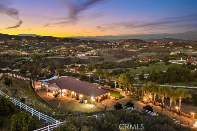 Experience peaceful La Cresta living in this beautifully maintained single-story Mediterranean home, perfectly positioned to take in sweeping mountain and city-light views. From the moment you walk in, the open floor plan, vaulted ceilings, wood beams, and natural light create a warm and inviting feel that’s ideal for both everyday living and entertaining. The great room features a cozy fireplace and flows effortlessly into the oversized gourmet kitchen, complete with granite countertops and plenty of space for gatherings. The primary suite is privately tucked away on its own wing of the home and offers incredible views along with a spacious, spa-like bathroom. The additional bedrooms sit on the opposite side, giving everyone their own comfortable space. Step outside to a true outdoor oasis. A luxury pool and spa overlook some of the most beautiful views in La Cresta—perfect for morning coffee, relaxing afternoons, or sunset evenings with friends. The yard also includes a sunken firepit, built-in BBQ, and an outdoor bathroom, making it a great setup for entertaining year-round. The 5.84-acre property is thoughtfully laid out with mature citrus trees—orange, lemon, and lime—along with a small avocado grove. There’s plenty of room for horses, a barn, workshop, guest house, or simply enjoying the open space and tranquility.