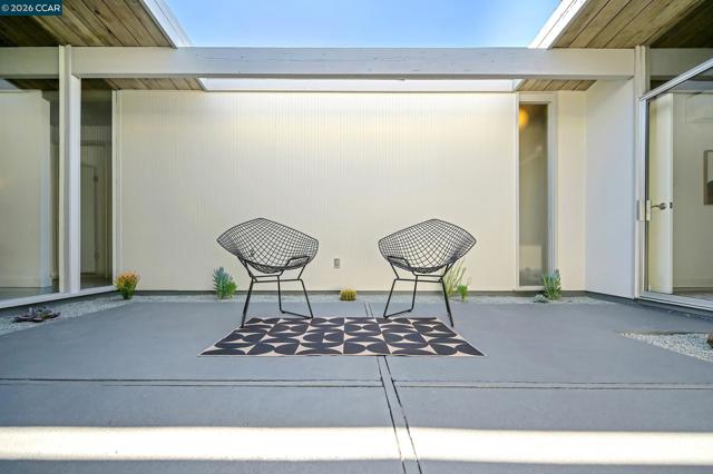 Beautiful iconic Eichler located in the charming Rancho de los Santos, thoughtfully refreshed with authentic mid-century details and modern upgrades. Designed by architect Claude Oakland, enter the home through the open-air atrium with a tranquil Zen garden that immediately sets the tone for the home’s timeless design. Inside, enjoy the seamless indoor-outdoor living and classic post-and-beam architecture that Eichlers are renowned for. Lovingly maintained by a family for decades, this mid-century gem offers versatility with four bedrooms PLUS a bonus laundry/office space. Period-correct features include rare unpainted tongue-and-groove ceilings, new VCT flooring, globe lighting and Eichler Numbers. Best of all, enjoy luxurious radiant floor heating powered by a newer radiant boiler for ultimate comfort. Modern upgrades include new AC/heating mini-splits, quartz kitchen countertop, newer appliances, bathrooms, double paned windows & epoxy garage flooring. Rest easy with smart-home features like the A3 doorbell & camera system and a Hydrawise automatic drip irrigation. Ideally located near BART, major freeways and all of life's necessities, this move-in-ready Eichler is ready to welcome its next owners so don't miss your chance to own a piece of architectural history!
