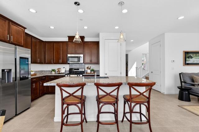 Better than new, this 4-bedroom, 3-bath home blends modern finishes with a highly functional layout located in the Meadows at Allendale and built by DeNova Homes. A soaring ceiling at the foyer creates a striking first impression while the 9-foot ceilings and abundant windows enhance the light filled living spaces. The open kitchen features granite counters, a large island with a sink and stainless steel appliances, flowing seamlessly into the expansive great room. A wall of windows and sliding glass door connects the interior living space to the the large patio and landscaped backyard ideal for gathering and everyday living. The flexible layout includes a downstairs bedroom and full bath. There is a spacious inside laundry room, and generous storage throughout this home. Upstairs the primary suite offers views of the hills with a expansive bathroom and walk in closet. Additional bedrooms are the perfect size and designed for comfort. Move in ready and conveniently located close to the community park, this home offers modern design, functionality, and a desirable location. #Allendale#Betterthannew#Spaciousliving