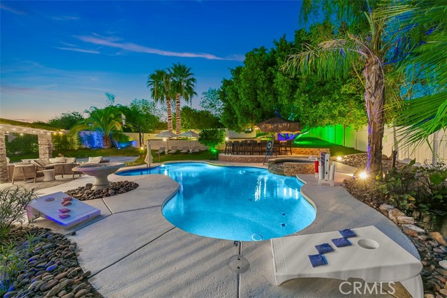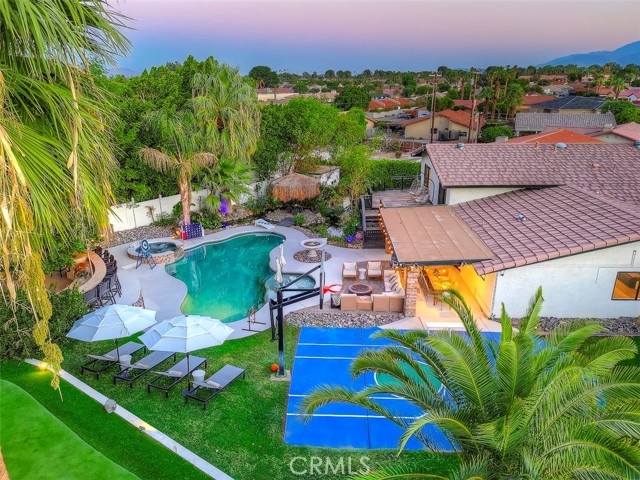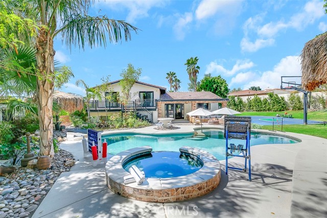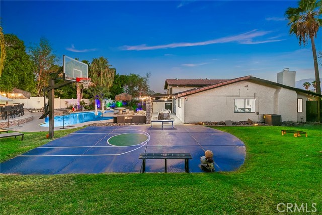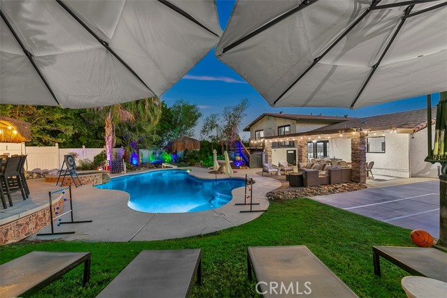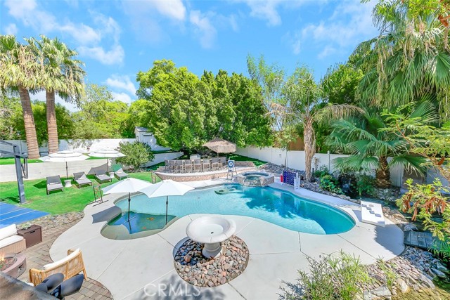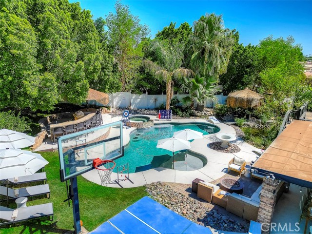 Updated Pics, Updated Price. Great Large Single family home at the end of a culdesac. Massive backyard would be great for a large family. An Extra Kitchenette downstairs for added flexibility. Currently acting as a successful short term rental. This Property is something you'll NEED to see to appreciate! Outside you'll see a pool, spa, putting green, koi pond, basketball court, Kids playhouse, outdoor kitchen, and palapa with TV's. Inside enjoy all newer furniture tastefully decorated. Downstairs you'll find another game room with pool table, shuffleboard and more. Best of all it comes fully furnished.