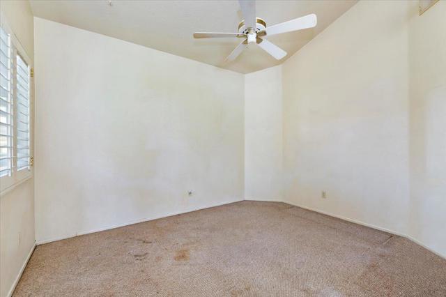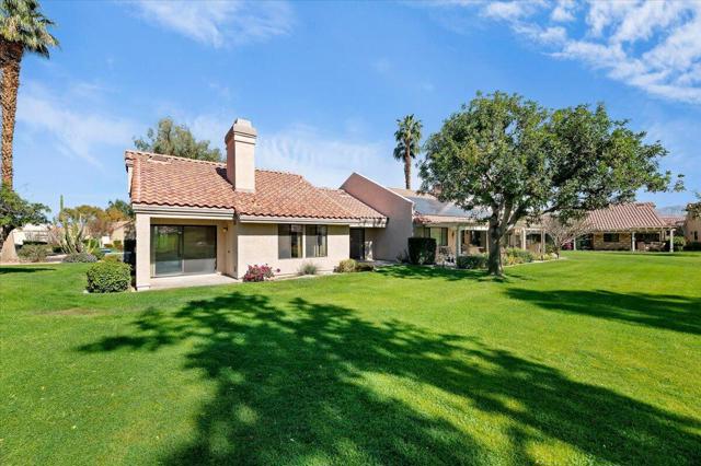 What if you could own a home in Palm Desert Resort Country Club with greenbelt views and a community pool just steps from your patio?This two-bedroom plus den home offers flexible living space perfect for guests, a home office, or a quiet retreat. The living room features vaulted ceilings, plantation shutters, and a fireplace that creates a warm and inviting atmosphere.The kitchen opens to an informal dining area designed for comfortable everyday living.Highlights include:Two-car garage Greenbelt location Community pool just steps away Short-term rentals allowed.Palm Desert Resort Country Club is a gated community featuring a lush 18-hole championship golf course, clubhouse, tennis courts, bocce ball, lakes, and beautifully maintained greenbelts throughout the community.Association dues include building and grounds maintenance, cable TV, clubhouse access, and trash service.