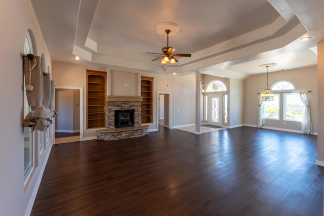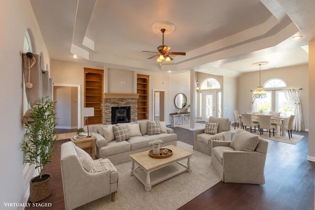 Welcome to this exquisite custom-built estate nestled in the prestigious, gated community of Lake Riverside Estates, where panoramic 360-degree views and refined craftsmanship meet in perfect harmony. This stunning residence sits on hilltop of a professionally laid circular concrete driveway with an expansive lot and features solid 2x6 construction, soaring recessed and tray ceilings, and oversized windows that flood the interior with natural light while capturing breathtaking views of surrounding mountains, valleys, and sunsets under crystal-clear skies. Designed for both elegance and functionality, the home boasts elegant vinyl plank and travertine tile flooring throughout, sleek Quartz countertops, and an open-concept layout ideal for entertaining or quiet relaxation. The gourmet kitchen is a chef's dream with self-closing custom cabinetry, a large center island, and walk-in pantry, seamlessly flowing into the spacious great room with a striking stacked stone fireplace and wood-burning stove. The cozy breakfast nook and upstairs loft with three serene window nooks provide peaceful spaces to unwind. Offering four generously sized bedrooms and 2.5 luxurious bathrooms, the home includes two spa-inspired jetted tubs and a private primary suite featuring dual vanities, a soaking tub, a step-in stone shower, and two oversized walk-in closets. Additional highlights include a well-appointed laundry room, custom wall finishes, and ample storage throughout. Step outside to enjoy a pergola-covered patio with stone fireplace, fenced dog run, wood yard, large wooden playset, livestock area, and open pads ready for horse paddocks or future structures. A nearly 1,400 sq. ft. attic, currently used as a workshop and office, offers flexible space for creative or professional pursuits. Modern amenities include on-demand water heater, water softener, dual-owned propane tanks, zoned HVAC, FIOS high-speed internet, and a Conex box workshop with 50-amp subpanel and lighting. Residents enjoy private access to a 3,600-ft airstrip, miles of equestrian and hiking trails, a community pool, sports courts, playground, a scenic private lake with picnic areas, monthly farmers markets, and Ellery's Bistro for on-site dining. This rare and luxurious estate delivers an exceptional lifestyle combining comfort, nature, and top-tier amenities in one unforgettable setting. Home listing website with all the details: https://www.outriderrealty.com/listing/crazy-horse