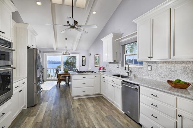 Wake up to shimmering lagoon views and ocean breezes from this stunning Carlsbad retreat perched right on the water’s edge with short term rental potential! This 3-bedroom, 2.5-bath home blends relaxed coastal living with modern style in one of North County’s most sought-after locations. Step inside to a light-filled great room with soaring vaulted ceilings, a spacious living area, and a large deck that spans the dining and living rooms—perfect for morning coffee or sunset dinners overlooking the water. The spacious primary suite is a serene retreat with sweeping lagoon vistas, while the lower level features two additional bedrooms separated by a cozy den and direct access to the beautifully landscaped backyard—ideal for guests or a quiet home office space. Every room in the home showcases luminous water views, filling the interior with natural light and coastal serenity. Highlights include an oversized, attached two-car garage with sleek epoxy flooring, solar panels, upgraded bathrooms and thoughtful updates throughout. Nestled in a central location just minutes to Carlsbad Village and the beach, you’ll love the short distance to Michelin star restaurants, local boutiques, and the surf. Whether you’re hosting friends on the deck, launching a paddleboard from the lagoon, or watching the sunset melt into the Pacific, this home truly captures the spirit of coastal California living.