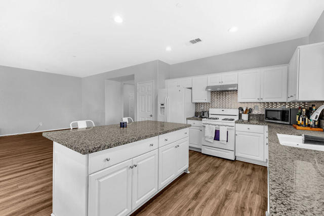 This spacious home is now vacant and priced to sell quickly in the highly sought-after gated Haciendas community of North Indio. Offering a flexible floor plan and over four bedrooms of living space, it's perfect for multi-generational living, guests, or a home office setup.The main home features three bedrooms and two bathrooms, a large formal dining room, and a beautifully upgraded kitchen with white cabinetry and granite countertops, Throughout the home, you'll find laminate flooring, recessed lighting, and an abundance of natural light.A standout feature is the enormous attached casita with its own private entrance, living room, bedroom and bathroom, plus a kitchenette with cabinets, granite countertop, sink, mini refrigerator, and a utility closet with washer/dryer hookups -- ideal for guests, extended family, or rental potential.Additional highlights include a slider off the kitchen leading to the backyard, a large laundry room with extra storage, a two-car garage, and a covered entry with a gated courtyard.