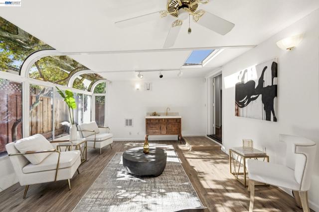 Welcome home to this beautiful updated 4 bedroom, 2-bath residence in the heart of Livermore Wine Country. Formal living and dining areas flow effortlessly into a sophisticated open-concept design, anchored by an brick fireplace. The kitchen showcases crisp white cabinetry and tile countertops, while a permitted sunroom expands the living space-ideal for elegant entertaining and everyday comfort. Spacious front bedrooms include one with ADU potential, complete with private entry, offering flexibility for guest or multi-generational living. Custom cabinetry throughout enhances both style and functionality, complemented by fresh interior and exterior paint for a truly move-in-ready experience. Solar is leased for added efficiency. The charming backyard with mature fruit trees, perfect for relaxing or hosting. Ideally located within walking distance to top rated schools, Robert Livermore Community Center, and just minutes from the vibrant, award-winning downtown Livermore.