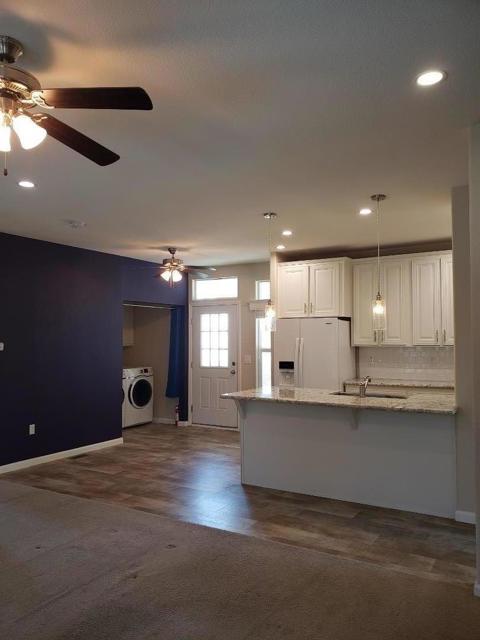 PRICE REDUCED!! Welcome to this charming 7 year young corner home located in the all ages desirable Moffett Mobile Home Park walking distance to vibrant downtown Mountain View, also walking distance to Light Rail and Caltrain. Easy access to major freeways/highways like 101, 237, and 85. Offering a spacious and bright 995 square feet of thoughtfully designed living space with large windows that brings in plenty of sunlight with 2 spacious bedrooms and 2 full bathrooms for comfortable living. The open concept kitchen is well-equipped with white Whirlpool appliances, a gas oven and range, dishwasher, microwave, while the quartz countertops add a sleek and modern look. The combination of a family room, dining area, and kitchen creates a large and open space for relaxation. The home features a shower over tub in both bathrooms and a laundry area equipped with washer and dryer for added convenience, and ceiling fan for year-round comfort. The flooring throughout the home includes a mix of carpet and engineered wood, catering to both comfort and style. This move-in ready home located within the desirable Mountain View Whisman School District. Whether you're seeking to downsize or seeking for a well-rounded lifestyle in a vibrant community, this is a place to consider your home.
