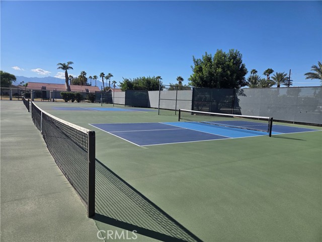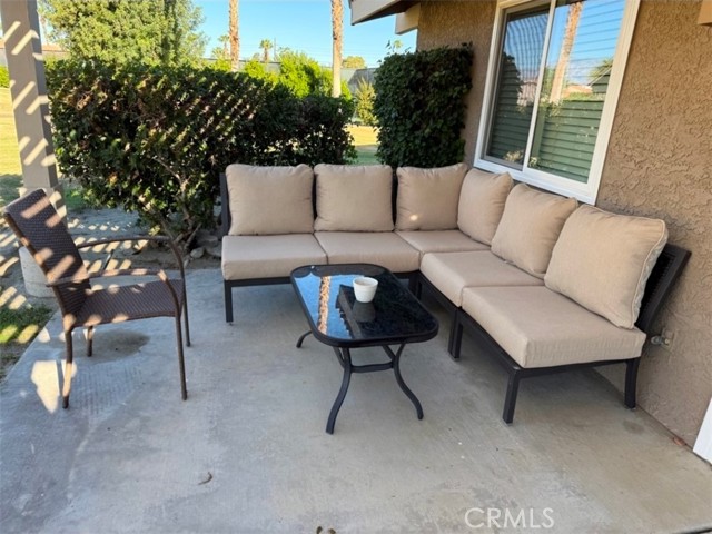 Fully furnished 1 story with no one above you. This 2 bedroom 2 bathroom property is located in the gated La Quinta Palms neighborhood and includes all utilities (water, electric, trash & Wi-Fi!) All kitchen appliances, plates, glassware, linens, towels and washer / dryer. Literally bring your clothes and you are home. Gated community offers 6 pickleball courts, 8 pools, 1 spa. 1 Olympic size swimming pool is heated December to May. Great location is super close to Indio Polo Grounds & Fields, Indian Wells Tennis Garden, Hwy 111 and the 10 freeway, restaurants, shops, Eisenhower hospital & Health care
