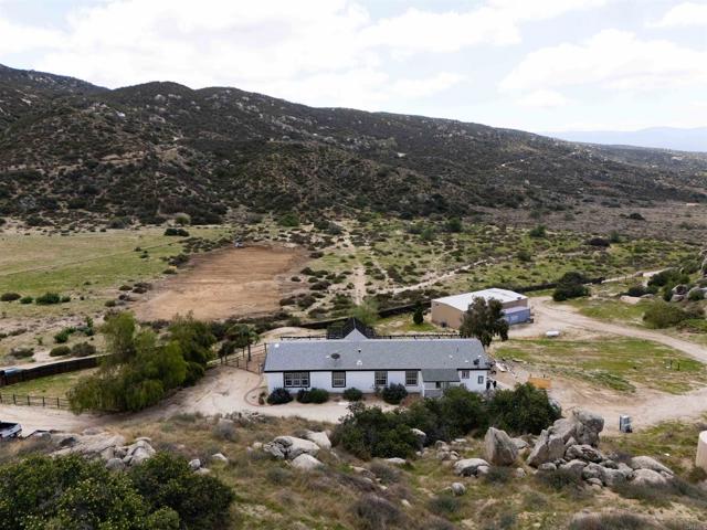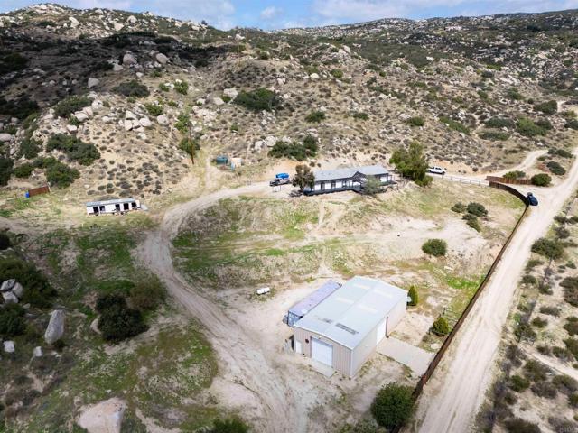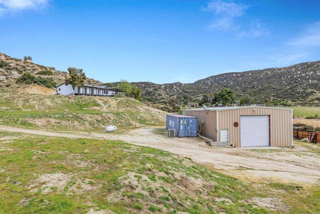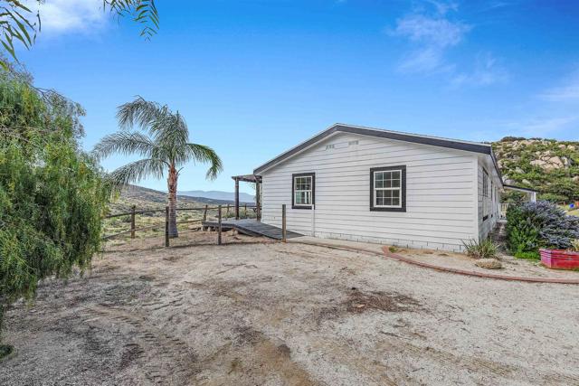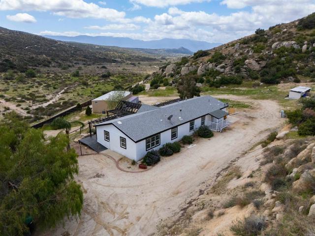 Welcome to Lewis Valley – Your Private 40-Acre Ranch Retreat in the Hills of Hemet. If you’re seeking serenity, privacy, and wide-open spaces, this property in Lewis Valley is a rare opportunity to own your own 40-acre ranch surrounded by rolling hills and breathtaking views. Property Features: Peaceful, secluded, and tucked away off a dirt road with no street noise. 2,400 Sq. Ft. Manufactured Home – Recently remodeled with 3 bedrooms, 2 full baths, a spacious living room with vaulted ceilings, and an additional 600 Sq. Ft. bonus family room. Updated Interior Finishes – Luxury vinyl plank flooring, new kitchen with updated cabinetry, counters, and hardware, fresh baseboards, and large dual-pane windows bringing in natural light and framing scenic views. Primary Suite – Private bath with a walk-in shower, soaking tub, dual sinks, and ample storage. Generous Guest Bedrooms – Spacious with picturesque views of the surrounding hills. Interior Laundry Room – Convenient and functional. Outdoor Living: Expansive View Deck – The perfect place to unwind and enjoy the gentle breezes and snow-capped mountains in the distance. Private Well & Pressure Tank – Providing your own water source. Newer Roof – Installed in 2007 for peace of mind. Ceiling Fans Throughout – Adding comfort year-round. Workshop / Detached Building: 60' x 30' Steel Building – A versatile space with electricity, water, and a separate septic system. Two Finished Rooms & Kitchenette – Ideal for a guest suite, office, or studio. Large Workshop / Warehouse Area – With roll-up doors and separate access driveway — perfect for RV storage, car enthusiasts, or agricultural use. Conex Container Included. Additional Highlights: Multiple Rough Pads – Ready for expansion, additional buildings, or potential future projects. Unmatched Privacy – Enjoy a tranquil setting without neighbors in sight. This is truly a special property offering a unique blend of rural living, privacy, and potential — ideal for ranchers, hobbyists, or anyone looking to escape the hustle and bustle. Take the back roads to Palm Desert or Temecula for some wine tasting. Bring your horses, chickens and sport utility vehicles. Schedule your private showing today and explore all the possibilities this 40-acre ranch has to offer!