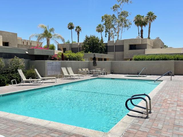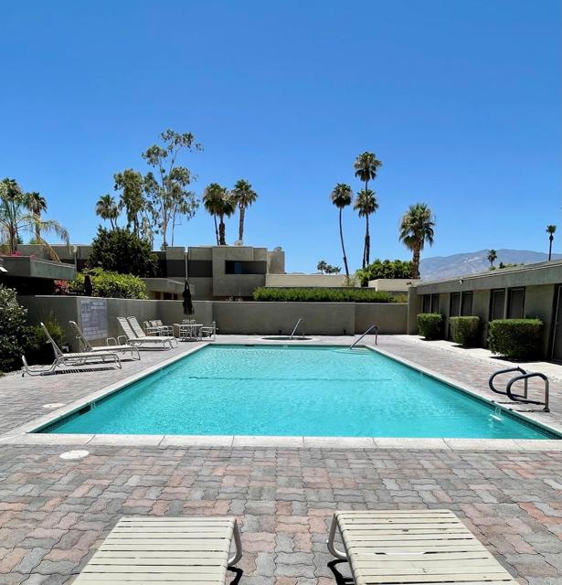 Welcome to the fabulous community of Pueblo Sands, the epitome of Palm Springs Living. This unique condo features 2 bedrooms, 2 bathrooms with no upstairs neighbors & only one side neighbor, perfect for privacy. Tile flooring throughout, updated kitchen & baths and not one but 2 patio spaces to enjoy the outdoor living space. Assigned parking & storage available in carport. Enjoy the 2 community pools & spas while basking in the sun surrounded by our gorgeous Palm Springs mountains. Sought after location close to downtown Palm Springs, PS Airport, shopping, food & entertainment.Don't miss out on this charming condo that offers privacy & comfort.
