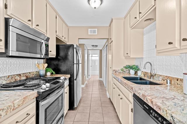 This updated unit offers comfort and convenience in a well-maintained gated community. The spacious living room features a fireplace with custom mantel. The kitchen includes newly painted cabinets, new counters, and comes fully equipped with a refrigerator, stove, and dishwasher. The bathroom offers a refinished shower, new fixtures, updated lighting, mirror, and ample storage. Freshly painted throughout, this home is clean, bright, and move-in ready. Located close to freeways, shopping, dining, and more. Community includes pool, spa, and tennis court. A great opportunity in a prime location!