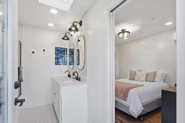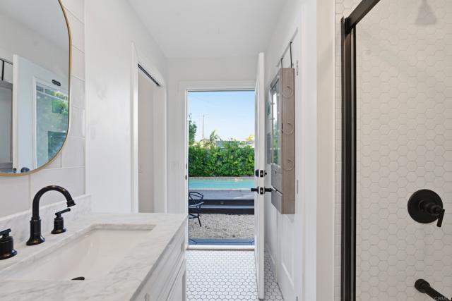 Your Own Private Spanish-Style Resort — Two Homes in One! This classic 1935 Spanish Revival captures the romance of old San Diego with the luxury of modern living, complete with a fully permitted, 1-bedroom, detached Guest House/ADU and fully-owned solar. You get two houses in one! Homes like this rarely become available in San Diego. The exquisite main residence (approx. 1,132 sqft) offers 2 bedrooms and 2 baths, thoughtfully updated to preserve its original charm with arched doorways, hand-crafted details, a formal dining room with tray ceilings, and a kitchen with a bright breakfast nook. Kitchen upgrades include stainless-steel appliances, quartz countertops, and apron sink. The primary bedroom offers an en-suite bathroom and a walk-in closet that open seamlessly through French doors to your private resort-style backyard. A tranquil oasis with a sparkling pool, covered outdoor lounge area, and multiple patios perfect for entertaining or simply relaxing under the California sun. The detached 1-bedroom, 1-bath fully permitted ADU (approx. 603 sq. ft.) built in 2023, features its own entrance, full kitchen, washer and dryer, and offers complete privacy. Ideal for multi-generational living, a guest retreat, a rental, or a short-term rental income opportunity. Once a successful Airbnb, this space offers exceptional flexibility for both lifestyle and investment. Additional highlights include fully owned 5kW solar, luxury appliances and designer updates, newer closet system in both the primary and 2nd bedroom, mini-split A/C units, a tankless water heater, washers and dryers in both homes, recessed lighting, and plantation shutters. A gated driveway provides ample parking with two large storage sheds and potential RV space. Move-in ready and truly one of a kind, this home invites you to live every day like you’re on vacation. This is an incredible property that will take your breath away. Minutes to neighborhood cafes, shopping, dining, SDSU, and major freeways, this is more than just a home; it’s a smart, turnkey investment in one of San Diego’s most desirable and charming neighborhoods. Whether you're a buyer looking to build equity while generating income or an investor seeking a move-in-ready property in a high-demand area, 4534 Alice St delivers the lifestyle, flexibility, and long-term value you've been dreaming of.
