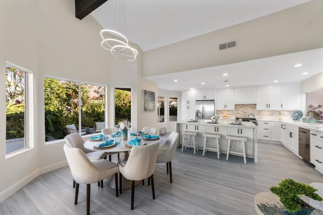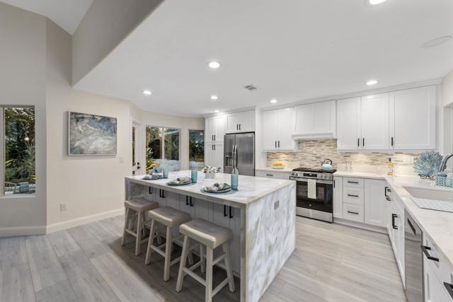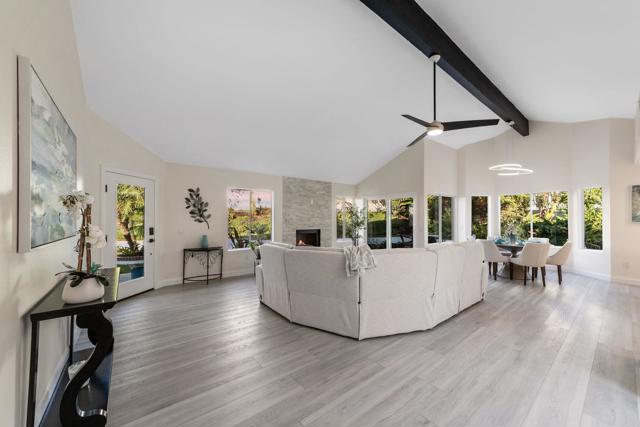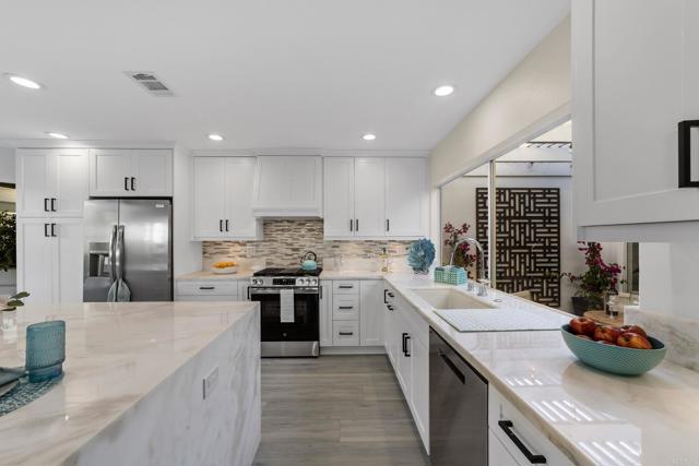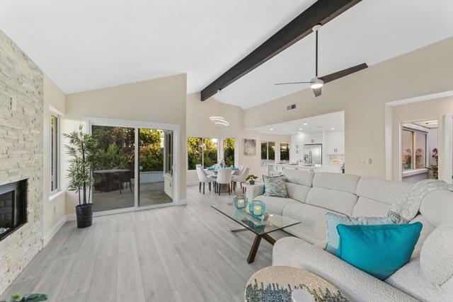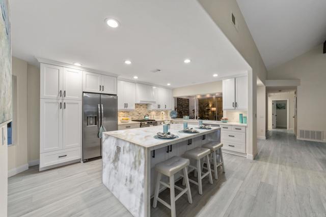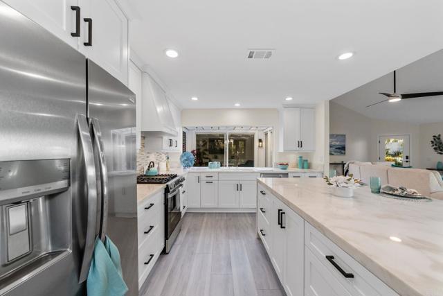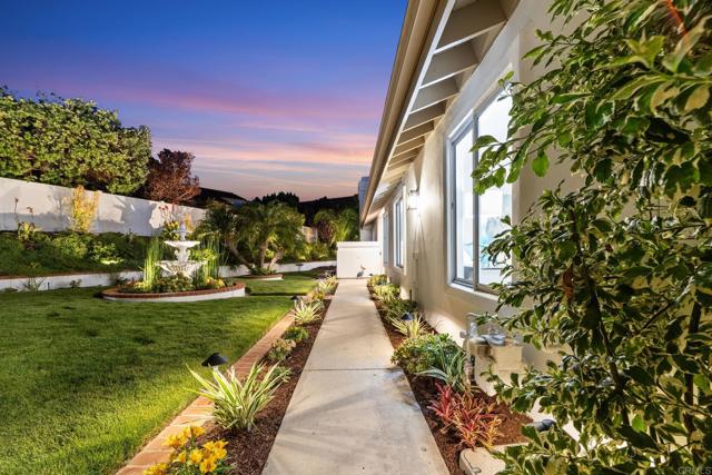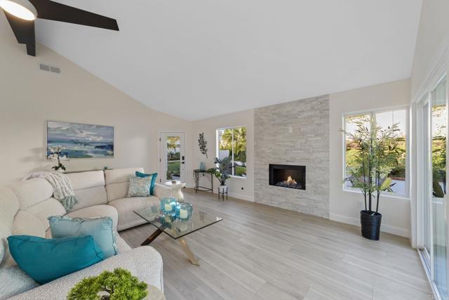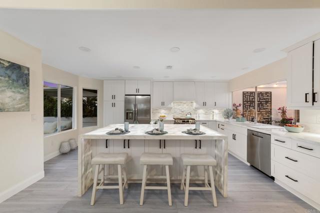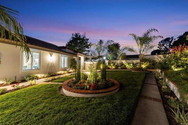 ABSOLUTELY STUNNING COASTAL ELEGANCE: COMPLETELY REVITALIZED RETREAT! NO EXPENSE SPARED! St. Tropez Model. 2 Beds | 2 Baths | Office | One of the Largest, Most Beautiful Yards in the OHCC Community. Welcome to your very own Oasis in the heart of Oceanside! This remarkable property has been revitalized into a glamorous showstopper, blending luxury, modern comfort, and timeless coastal charm. Your Private Shangri-La Awaits—From the moment you arrive, you're greeted by one of the most captivating front yards in the area--Set on an expansive 84’ x 102’ lot, this lush tropical paradise features: • A stunning array of mature tropical palms, vibrant flowers, and succulents • A grand centerpiece fountain • Cooling (pool-sized!) lush green lawn • Raised vinyl privacy fencing for total seclusion • Recently showcased on the Garden Tour, this space is not only serene, but truly extraordinary! • HOA maintains the front yard Interior Elegance & Open Concept Living Inside, natural light floods this fully reimagined open floor plan with panoramic garden views from every window—blurring the lines between indoor luxury and outdoor beauty. A central atrium adds to the peaceful ambiance. The living room is anchored by a bold black beam, modern fan, and striking chandelier, adding depth and drama to the vaulted ceiling. Relax in front of the new floor-to-ceiling stacked stone gas fireplace. The Kitchen Steals the Show: Entertain in style with this chef-inspired masterpiece: • Oversized 8’ island topped with glowing translucent quartzite • Stainless steel appliances & sleek white shaker cabinets • Slide-in gas range with custom hood • Single basin white ceramic sink • Recessed & under-cabinet lighting • Custom layout with incredible flow & functionality Luxury Retreat-Style Primary Suite The spacious primary suite is a tranquil haven, featuring: • Dramatic ceilings with a black beam & modern fan • Peaceful garden views • Huge walk-in custom closet • Spa-inspired ensuite with oversized marble-look shower, bench seat, glass doors, and a double-sink vanity with designer lighting More than Just a Bedroom: The sunny second bedroom overlooks the fountain through two corner windows—guests won’t want to leave! The hall bath is equally refined with: • Deep soaking tub • Rain shower head + handheld spray • Marble-look tile & elegant finishes Community Living at Its Best! Located in a vibrant 55+ community offering: • 18-hole executive golf course with no green fees • Jr. Olympic saltwater pool • Fitness center, 40+ social clubs & events • Activities include crafts, cards, billiards, art, SAILING & RV clubs, RV parking • All for incredibly $10-$15 yearly low fees! Nearly Everything is New • Newer HVAC • Newer Copper Plumbing Throughout • Fresh custom interior & exterior paint • Commercial-grade “beachy” luxury vinyl plank floors • Custom lighting & finishes throughout Live the Coastal Lifestyle Without Lifting a Finger--This home is more than just move-in ready—it’s an elevated way of life in a community where it feels like the cruise ship never leaves the dock. Don't miss your chance to own one of the most breathtaking and unique homes in Ocean Hills Country Club.
