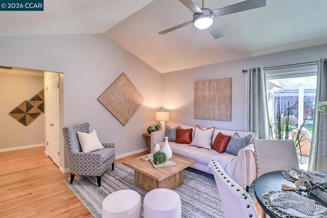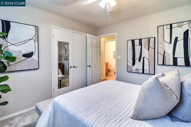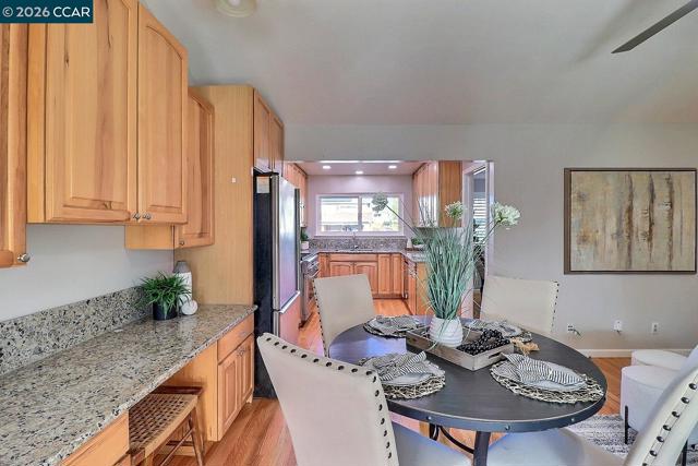 Welcome to this beautifully updated 4-bedroom, 2-bath home nestled in one of Concord’s most sought-after neighborhoods. Offering over 2,000 square feet of thoughtfully designed living space, this Bishop Park gem combines timeless finishes with modern comfort. Located on a quiet court, the home features a spacious living room filled with natural light, recessed lighting, a welcoming family room and a formal dining room perfect for entertaining. The remodeled kitchen shines with granite countertops, rich hickory cabinetry, and a 36-inch gas cooktop with electric oven. Gorgeous refinished hardwood floors flow through the main living areas, while brand-new carpeting adds comfort to all bedrooms. Additional upgrades include remodeled bathrooms, dual-pane windows, 220 volt outlets in garage and backyard, central heat and air-conditioning, fresh interior paint, and a whole-house solar system for energy efficiency. Step outside to enjoy the lovely front and back yards, complete with a new driveway, mature fruit trees, a garden area, and a covered patio with ceiling fans, perfect for year-round outdoor living and entertaining. This exceptional home truly has it all. Don’t miss your opportunity to make it yours!