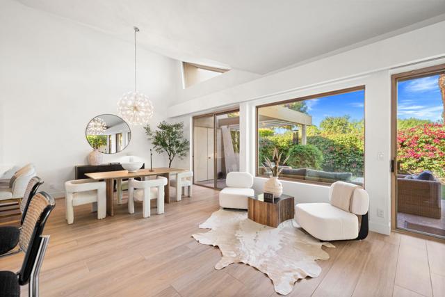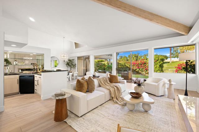 Arguably one of the most spectacular homes ever offered at Rancho Mirage Country Club, this residence has been masterfully reimagined into a showcase of modern luxury, sophistication, and desert elegance. Perfectly positioned on the fairway, the home captures serene golf course views while maintaining a rare sense of privacy.Inside, no detail has been spared. Two oversized master suites plus a den/office create a versatile, indulgent floorplan. The bathrooms rival a five-star resort: a spa-like master retreat with a freestanding soaking tub and a guest suite with an oversized shower featuring dual showerheads. All three baths are fully remodeled with the finest finishes.The heart of the home is the entertainer's dream kitchen--custom cabinetry, quartz and marble countertops, a dramatic center island, roll-out shelving, and a dedicated spice rack--designed to delight the chef in you. A full-service bar with refrigerator, Miele dishwasher, and Miele wine cooler completes the picture.Every corner whispers luxury: Toto toilets, Toto washlets, programmable shades, modern designer lighting, dual-zone HVAC, and new fans throughout. Step into the brand-new garage, finished with custom floor-to-ceiling cabinetry, pristine epoxy floors, and a Tesla charger--a showroom in its own right.Outdoors, the backyard has been transformed with dog-friendly artificial turf, elegant lighting, and a tranquil setting that extends your living space.The HOA elevates the lifestyle with cable, roof and exterior painting, lush landscaping, four sparkling pools, 24-hour staffed security, expansive greenbelts, and earthquake insurance--all included.All of this is located just minutes from The River, Restaurant Row, Palm Desert, and Palm Springs, and directly across from the soon-to-arrive Storyliving by Disney Cotino, ensuring a future as exciting as the present.This is more than a home. It is a statement of taste, success, and desert luxury at its absolute best! Call the listing agent for your private showing!