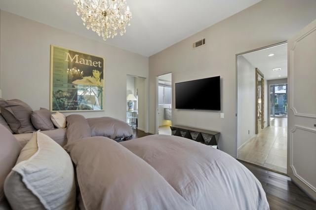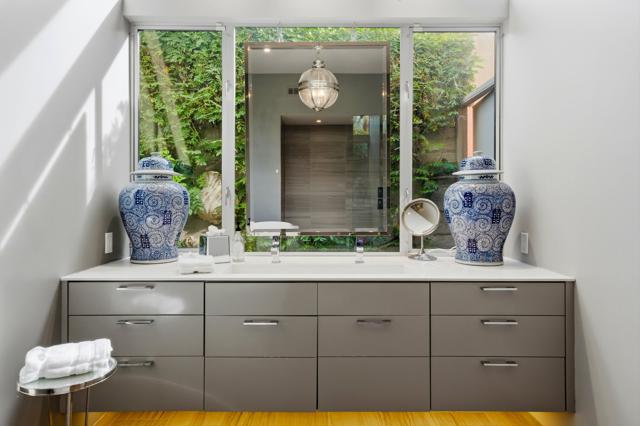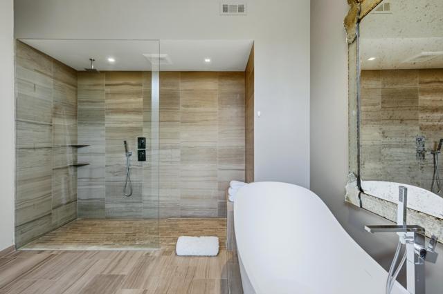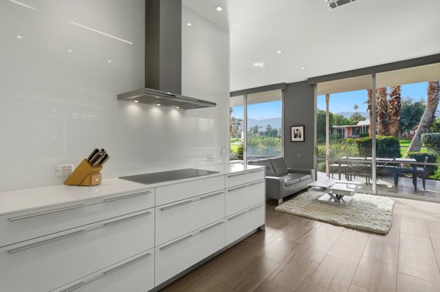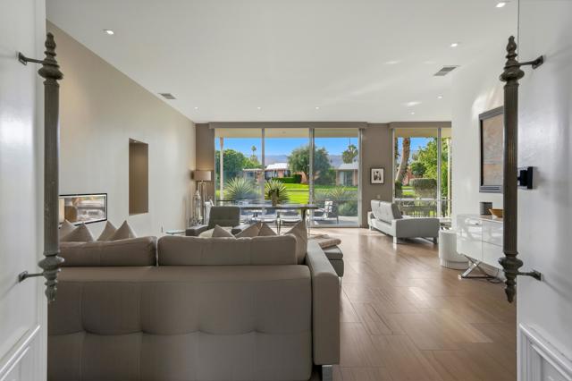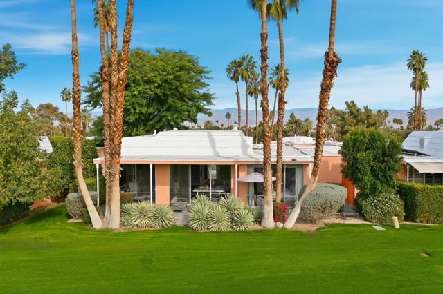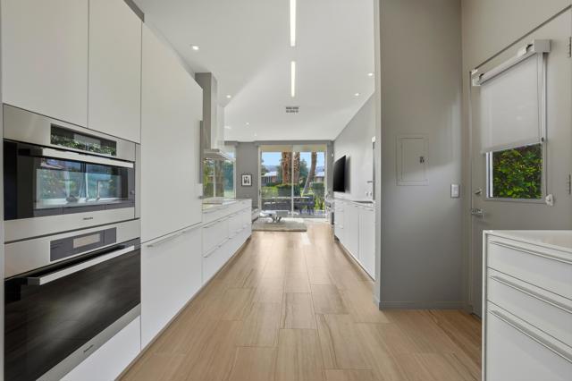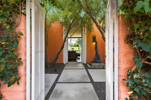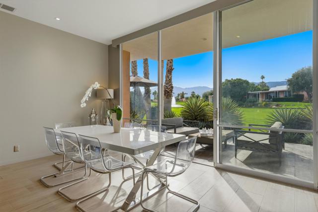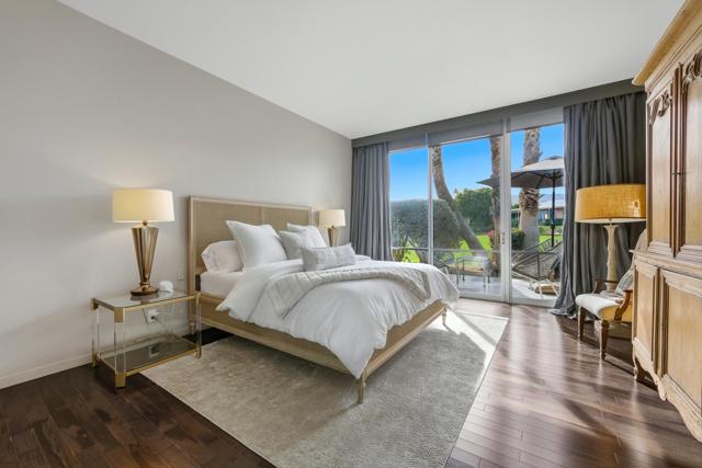 Available November / December, 2025, and from May 1, 2026, onward. Welcome to this exquisite Hollywood Regency gem nestled in the heart of Palm Desert. This fully remodeled retreat is perfect for renters seeking a lavish and unforgettable desert vacation experience. With an exceptional location, stunning golf course, breathtaking Santa Rosa Mountains, and serene lake views, this home is truly a one-of-a-kind oasis. As you step through the grand entrance, you'll be greeted by a modern, relaxed living space boasting towering ceilings and walls of glass that seamlessly blend indoor and outdoor living. The south-facing terrace offers gorgeous views and provides an idyllic setting for relaxation and entertainment. Inside, the artful design features monochromatic modern colors paired with vibrant conversational pieces, creating an atmosphere of refined luxury. The state-of-the-art Bulthaup Kitchen is a chef's dream, boasting sleek lines, uncluttered space, and high-end Miele appliances. The home offers two Bedroom Suites, each with lavish bathrooms featuring luxurious vanities and curbless showers typically found only in custom estate homes. The primary bathroom showcases a deep soaking tub, eye-catching wall mirror, and glass globe chandelier, while the Primary Suite features a spacious walk-in closet with a custom closet system. Located in the highly sought-after Marrakesh in South Palm Desert, this home is surrounded by Desert's finest private clubs, including Big Horn, The Reserve, and Vintage.