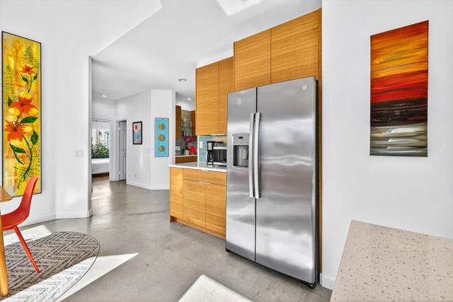 Set within the guard-gated community of Laguna de la Paz, this beautifully positioned, Fully Furnished Turn Key 3 bedroom, 2 bathroom mid-century modern decorated home offers spectacular lake and mountain views. Clean lines, a desirable floor plan, and concrete floors throughout give the home a stylish, modern feel while still feeling warm and inviting. Designed for both everyday living and relaxed entertaining, the interior spaces flow comfortably and take full advantage of the surrounding scenery. Whether enjoying a quiet morning coffee or an evening with friends, the setting captures the best of desert living. Laguna de la Paz is known for its resort-style amenities and beautifully maintained grounds. The HOA covers the roof, exterior stucco, exterior paint, and landscaping outside your gates, offering ease of ownership and added peace of mind. Residents enjoy access to 15 pools, 16 spas, a 5-acre lake, pickleball courts, tennis courts, a fitness center, billiards room, and clubhouse. This is a wonderful opportunity to own a distinctive home in one of La Quinta's most sought-after communities, where mountain views, lake views, and exceptional amenities come together in a truly special setting. Professional Photos 3/29