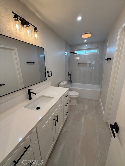 Beautifully updated 4 bed, 2.5 bath home in desirable North San Bernardino! This move-in ready property features a remodeled kitchen with quartz countertops, stainless steel appliances, and dark cabinetry. Bathrooms are fully upgraded with modern finishes. Enjoy premium wood flooring, new windows, fresh interior and exterior paint, and central HVAC. Low-maintenance yard with attached 2-car garage. Community offers a sparkling pool, picnic area, and well-kept grounds. Conveniently located near Cal State San Bernardino, freeways, parks, and shopping. Turnkey and ready to move in!