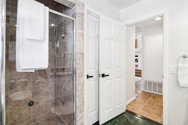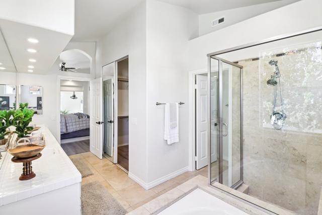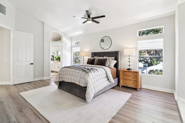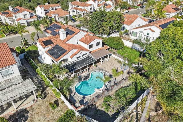Welcome to your dream home in the exclusive Southridge Estates gated community of Oceanside! This stunning property features five spacious bedrooms and three full bathrooms, perfectly designed for comfort and functionality. Enjoy soaring ceilings that fill the home with natural light and a versatile floor plan that adapts to your lifestyle. Step inside to a grand entry highlighted by a double-sided fireplace, creating a cozy ambiance in both the living room and family room. The chef-inspired kitchen offers abundant storage, a center island, a five-burner gas stove, a separate grill, and double ovens—ideal for entertaining and gourmet meal preparation. A first-floor bedroom with private exterior access and a full bathroom is perfect for guests or multigenerational living. Adjacent to the kitchen, an additional room can serve as a dining area, office, playroom, or be enclosed to create an ADU. The second floor features soaring ceilings throughout and includes four well-appointed bedrooms. The main suite stands out with its private ensuite, a luxurious bathroom, and a spacious walk-in closet. Enjoy seamless indoor-outdoor living with three sliding glass doors opening to a low-maintenance, resort-style backyard featuring a sparkling pool. Sitting on a generous 0.26-acre lot, this home includes a three-car attached garage with storage, leased solar panels installed in 2025, new LED lighting throughout, fresh neutral paint, new carpet, updated door and cabinet hardware, and a modern dining chandelier. The property is move-in ready and waiting for your personal touches. Located within walking distance to award-winning VUSD schools, EOS Gym, shopping, dining, and entertainment, and less than 7 miles from the coast, this home offers the best of Oceanside living. Don’t miss your chance to own this incredible property!