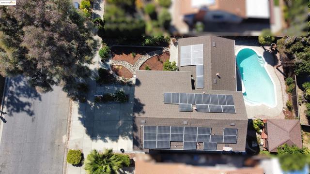 Beautiful move-in ready 4 bed, 2.5 bath home in the Edenvale area of San Jose. The spacious living room features soaring vaulted ceilings, solid cherry hardwood floors, and abundant natural light. A formal dining area flows into the updated kitchen with quartz countertops, stainless steel appliances, wine fridge and ample cabinet space. Just off the kitchen, the step-down family room includes a stylish wet bar with lighted shelves and a gas fireplace. Upstairs are three comfortable bedrooms plus a enormous primary suite with vaulted ceilings, dual vanity, new sinks and fixtures, a whirlpool tub, and a built-in makeup area. Recent upgrades include fresh interior and exterior paint, new carpet, LVF in all bathrooms and the removal of popcorn ceilings. The home features 38 owned solar panels, dual-pane windows, a new A/C unit, and a new central heating system. Step outside to a backyard designed for entertaining with a sparkling in-ground pool, a spacious gazebo ideal for games and laughing with friends. A separate shaded pergola is perfect for lounging or reading poolside. There's space for your BBQ and a fenced dog run. Located near shopping, restaurants, and Edenvale Garden Park—with easy access to Hwy 101 and Cal train station—this home truly has it all