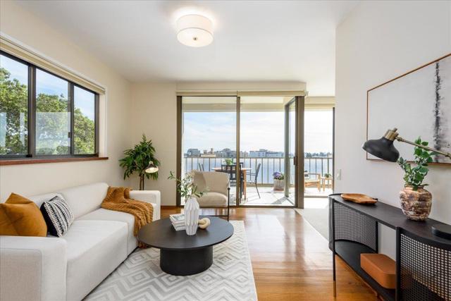 Refreshed unit --best floor plan, updated and ready to move in. Convenient to front desk, swimming pool, and gym, corner unit has lots of floor to ceiling windows, with views of the SM Bridge and the Bay. Bright and sunny with loads of storage and spacious rooms. Gourmet kitchen has lovely custom cherry wood cabinets, stainless appliances, handy pantry. Open floor plan, can be formal dining room or den/family room with combo living & dining room. Deck is large and east facing--morning sun lovers delight! Bedrooms are both extra large, with ample closets and well-appointed bathrooms. In-unit laundry room, extra storage, two deeded parking spaces and great amenities, including guest suites which can be rented for a nominal fee. The Mounds lobby and common areas are undergoing a major remodel and will be fresh and ready soon! First open house is March 14 & 15th--don't miss this wonderful unit!