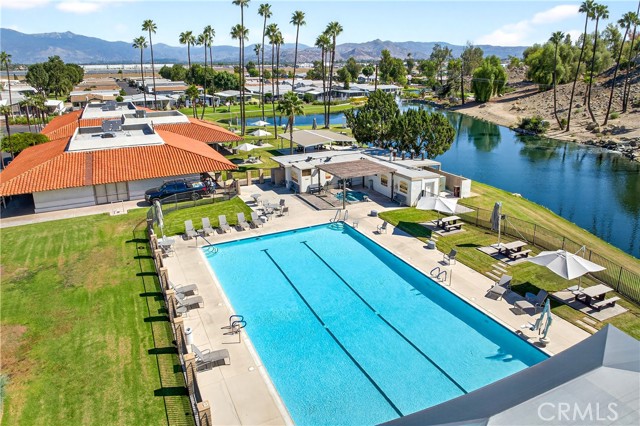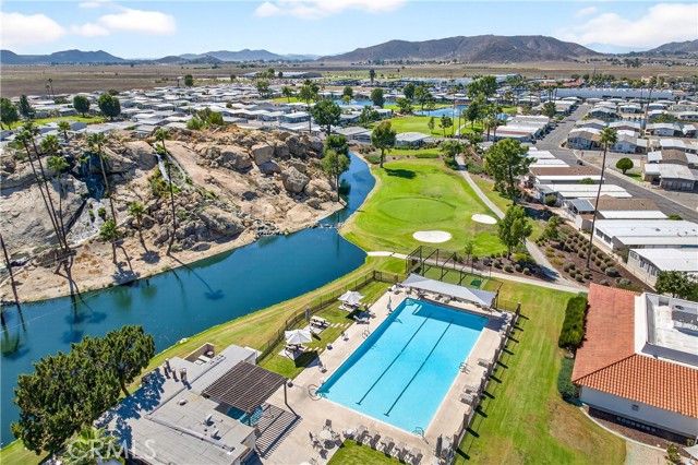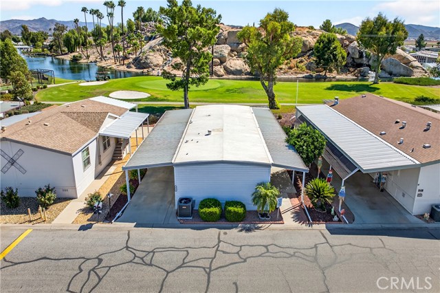 Welcome to The Lakes at Hemet West – Space #476, a beautifully located 2-bedroom, 2-bath home offering 1,120 sq. ft. of comfort and golf course living with picturesque views of the lakes, pool, and clubhouse. Enjoy the charming wrap-around porch, perfect for relaxing or entertaining, and a quaint kitchen with ample storage and included appliances—all in a move-in ready home. Located in a vibrant 55+ community with lakes, dog parks, walking trails, a clubhouse with a billiard room, and a full calendar of events including live music, food festivals, and more, this home offers resort-style living in a peaceful, scenic setting.