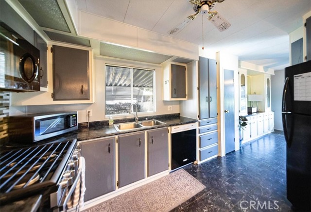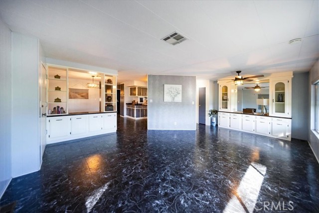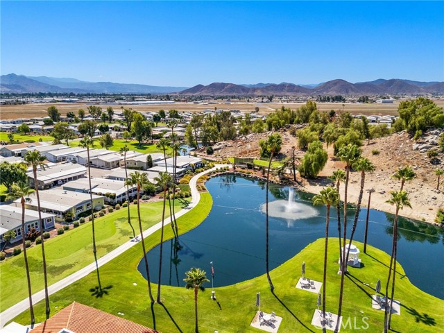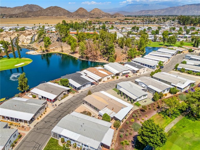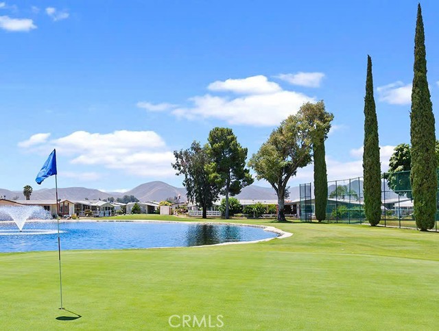 SELLER IS MOTIVATED! Seller may consider a flooring credit with the right offer! Nestled on the golf course in the sought-after 55+ resort community of The Lakes at Hemet West, this beautifully updated 2-bedroom 2-bath mobile home offers breathtaking views of the fairway and the cascading waterfalls just across the street, creating a daily backdrop that feels like a vacation that never ends. Inside, you’ll find newer flooring and fresh paint throughout, along with updated countertops and refinished kitchen cabinets. The microwave, stove, and refrigerator are all approximately five years old, along with the washer and dryer, which are also included. The spacious living room features ceiling fans and elegant French doors that open to an oversized covered porch, ideal for relaxing, people-watching, or enjoying the peaceful golf and water views. Both bathrooms have been updated, and the primary suite includes a walk-in closet. The fenced lot is perfect for pets and privacy, and the home has been thoughtfully improved with earthquake safety straps, reinforced newer skirting, a newer 40-gallon water heater, and updated PVC plumbing. This home is set within a vibrant resort community featuring five lakes, beautiful waterfalls and fountains, a golf course, an expansive dog park, state-of-the-art sports courts, and a clubhouse with a pool, card room, gym, shuffleboard, and more. Enjoy a lively social calendar with live bands and dancing, Taco Tuesdays, breakfast burritos, and community events that make every day feel like a celebration of easy, joyful living. Don't miss out on your chance to own and enjoy a small piece of Heaven. This seller is motivated and at this price, the home will not last!