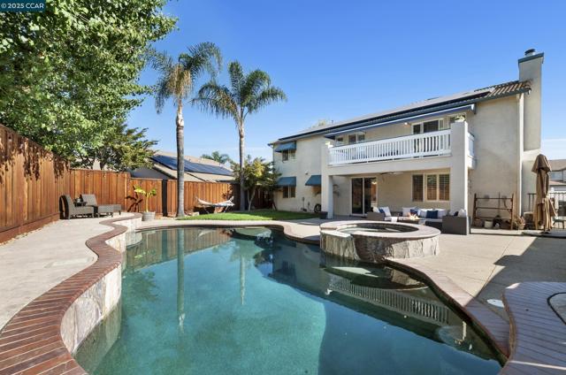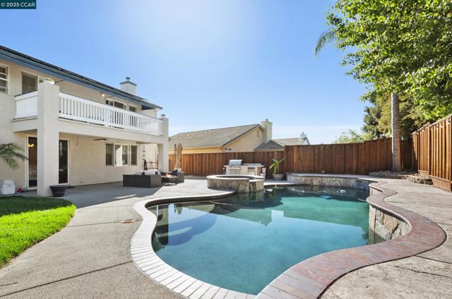 Welcome to this stunning 5-bedroom, 3-bath home on a peaceful court in Oakley’s sought-after Laurel Crest neighborhood. Inside, enjoy thoughtful upgrades throughout—new carpet, fresh paint, modern light fixtures, and updated bathrooms—making it move-in ready. A thoughtfully crafted kitchen shines with high-end details, handmade hardwood cabinets and quartz counters. The spacious layout offers bright living areas perfect for gatherings, plus a versatile downstairs office ideal for remote work, a gym, or hobbies. Upstairs, generous bedrooms include a luxurious primary suite with soaking tub and walk in closet. Step outside to a private backyard retreat—extra-tall fencing and no two-story neighbors give rare seclusion. Relax by the sparkling pool and spa or host lively get-togethers. A charming front garden adds room for flowers or fresh produce. Enjoy lower utility bills with fully owned solar with battery backup, a garage with 220-volt power and 20-amp outlets (great for tools, EV charging, or projects), plus a large driveway with RV parking. Perfectly situated to schools, parks, shopping, and freeway access, this home offers the ideal balance of comfort and convenience. With stylish updates and a resort-like yard, it’s ready for its next chapter. Will it be yours?