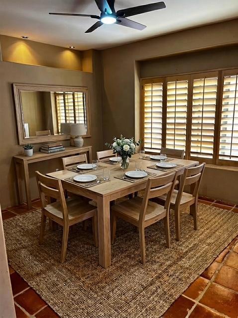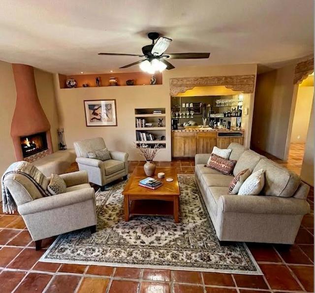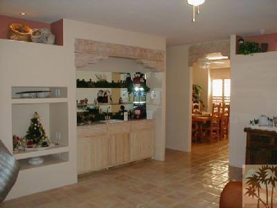 This is a lovely, revitalized, Sante Fe style unfurnished home, with wonderful mountain views. It has a double door entry, walled, newly landscaped front courtyard and attached 2 car garage. There is an expansive great room with high ceilings, a Pueblo style fireplace with raised hearth, there is also a wet bar for entertaining ,The open and airy kitchen, has re-done cabinets, a new dishwasher and the owner will supply a new refrigereator if the tenant needs one.. It also has a breakfast bar and is open to the family or dining room. The large master bedroom has an attached master bath and spacious walk in closet. There is also an indoor laundry room. The flooring is sautillo pavers which have all been redone. the guest bedrooms have new carpeting. Don't miss this charming home. The gardener is included. Some of these pictures have been digitally furnished, the home is offered for rent unfurnished