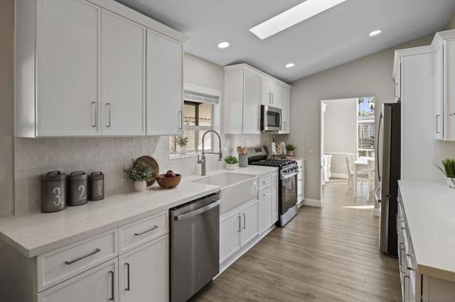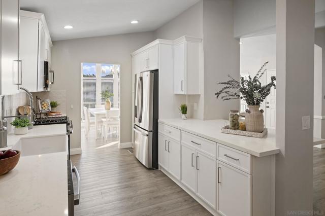 Price Improvement! Welcome to Rancho Carlsbad, a highly sought-after, private, gated 55+ Lifestyle Resort Community in the heart of coastal Carlsbad, California. No space rent! You own the land! This recently updated home is ideally situated along the coveted and rarely available street of Don Rodolfo backing up to the serene Calavo Creek bed offering exceptional privacy and serene natural surroundings. Featuring 3 bedrooms, 2 bathrooms, and approximately 1,931 square feet of spacious living, the home welcomes you with vaulted ceilings and abundant natural light. The beautifully remodeled kitchen showcases all-new slim-shaker cabinetry, quartz countertops, a large farmhouse sink, and new stainless-steel appliances, including a gas range with griddle. The thoughtful floor plan offers two living areas and two dining spaces, perfect for both entertaining and everyday comfort. The primary suite includes generous closet space, and both the primary and secondary bathrooms have been tastefully updated. Additional highlights include updated luxury vinyl plank flooring throughout, a newer HVAC system, water heater, and a new roof installed in 2021. Enjoy outdoor living from the covered front porch or relax on the private flagstone patio overlooking the creek bed—an ideal setting to unwind and enjoy nature. A spacious outdoor storage shed adds extra convenience. Rancho Carlsbad offers a vibrant lifestyle with resort-style amenities, including pickleball and tennis courts, a heated pool and spa, fitness center, billiards and game rooms, library, dog park, banquet facilities, and 35 different group clubs. RV parking is also available. Don’t miss this rare opportunity to own a beautifully updated home in one of Carlsbad’s most desirable communities—a true piece of paradise.