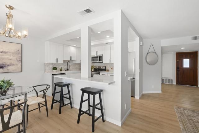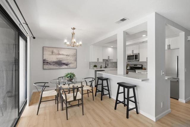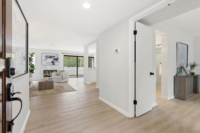 Welcome to Triple Crown - one of Solana Beach's most sought-after communities, tucked quietly west of the I-5. This fully remodeled condo sits in a quiet, private location overlooking a lush greenbelt, offering a peaceful retreat. Inside, you’ll find a fully remodeled kitchen featuring quartz countertops, updated cabinetry, and stainless-steel appliances, while a cozy gas fireplace anchors the living space - perfect for those cool coastal evenings. The spacious primary suite opens directly onto a private patio and includes an ensuite bathroom with a walk-in shower, all-new fixtures, and an updated vanity. A second private patio gives you even more outdoor space to breathe. Practical details are just as polished: stacked in-unit washer/dryer and a private detached one-car garage. Step outside and you're minutes from the Del Mar Racetrack, the Cedros Design District, boutique shops, and some of the best dining the North County coast has to offer. And just a 3 minute car ride or a 20-minute stroll to Dog Beach. Whether you're walking the shoreline or grabbing a table at a favorite local spot, this location puts it all within reach without sacrificing the quiet, tucked-away feel that makes Triple Crown so special.