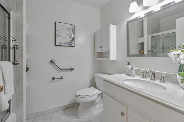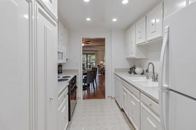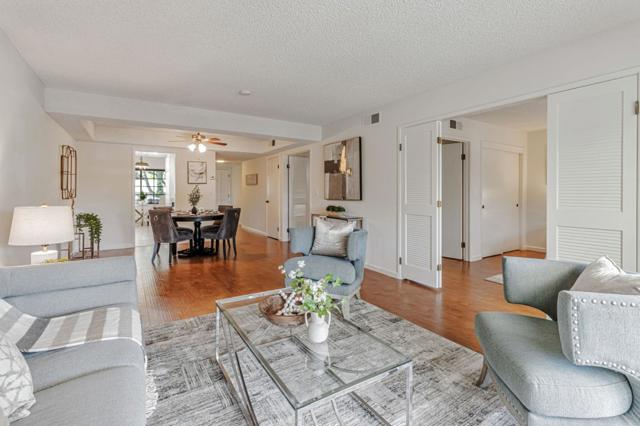 Welcoming, impeccably maintained an at an irresistible price, this upper-level residence is located within a secure gated community. Offering 1,223 square feet of comfortable living space, the home features two bedrooms, two bathrooms, six closets, a fully equipped kitchen, easy-care flooring, and updated bathrooms. Double-pane windows and a sliding glass door enhance comfort and efficiency, and the community laundry facility is just steps away. Homeowner association assessments provide excellent value, covering exterior building maintenance including paint, roof, balcony, stairs, and grounds, along with water, garbage, sewage, landscaping, and more. Situated within The Villages Golf and Country Club, a premier 55+ community, residents enjoy resort-style living with an impressive array of amenities. VGCC dues include a private clubhouse restaurant and bistro, 18-hole golf course, putting green, driving range, pro shop, fitness center, four community centers, four aquatic centers, tennis, pickleball and bocce ball courts, garden plots, equestrian area, scenic hiking trails, tranquil ponds, and more. This vibrant yet peaceful community is beautifully set against the East Hills of Santa Clara County, offering an ideal balance of active living and natural serenity.