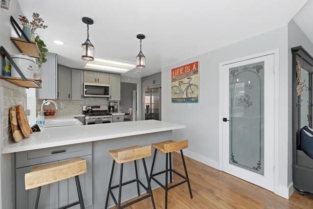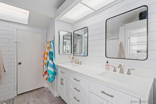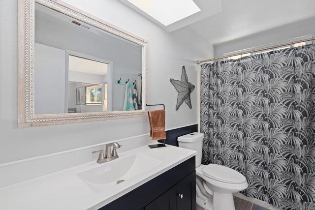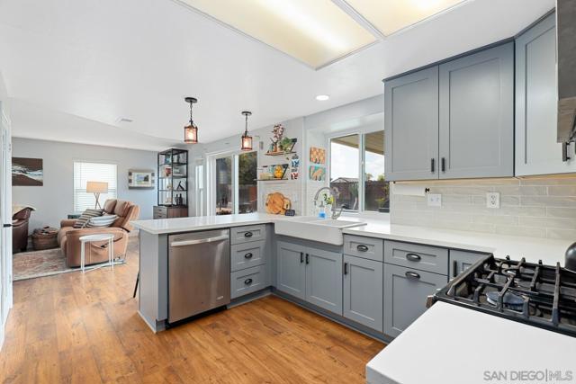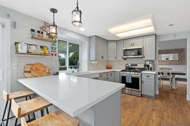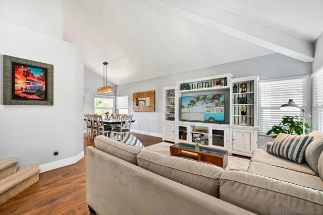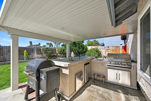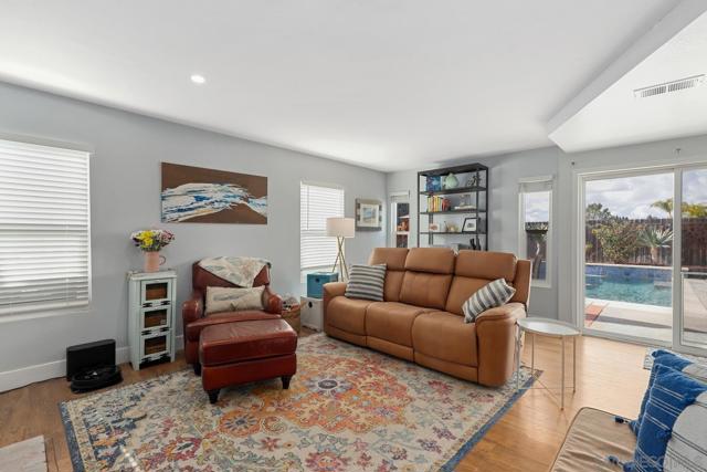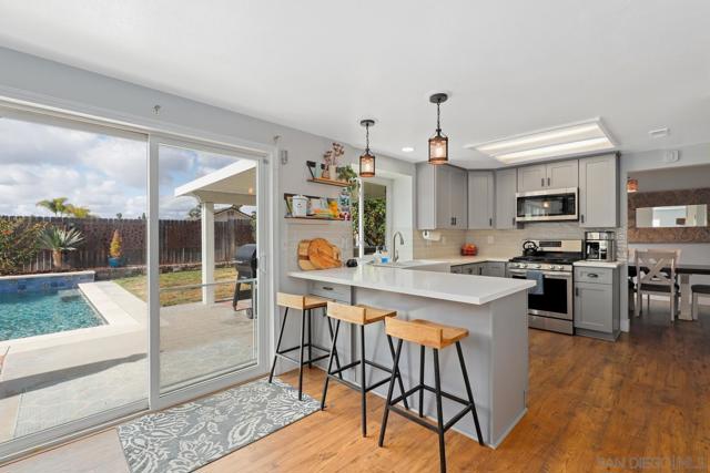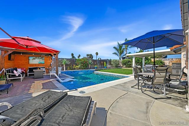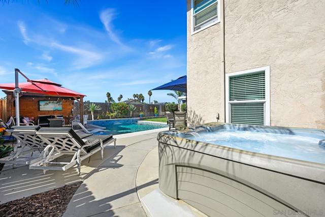 Beautifully Updated Home with Junior ADU & Saltwater Pool in Mission Santa Fe! This 4-bedroom, 3.5-bathroom, 2,057 sq. ft. two-story residence has been thoughtfully upgraded inside and out. Within the last three years, the flooring, kitchen, roof, and bathrooms have all been updated, while the windows were replaced in 2021, offering modern comfort and style throughout. A permitted Junior ADU is incorporated into the first floor as a partial garage conversion, creating the perfect in-law suite or multigenerational living space or RENTAL potential to offset mortgage costs! It features its own private entry (plus access from the main home), a kitchenette, full bathroom, and combined living/bedroom area. The main kitchen is a showstopper, designed with sleek finishes, modern cabinetry, and quartz countertops. Upstairs, the primary suite includes a beautifully remodeled bathroom, while additional bedrooms and baths provide plenty of space for family or guests. The backyard is an entertainer’s dream with a sparkling saltwater pool, outdoor kitchen/BBQ island, paver patio, gazebo on the pool deck, and mature citrus trees—all framed by updated fencing (approx. 4 years old). A front courtyard adds extra outdoor living space, perfect for morning coffee or evening relaxation. An above-ground spa is also available (negotiable). Additional highlights include leased solar for energy efficiency, an oversized driveway that accommodates up to 4 vehicles, plus garage space for parking and/or storage. Best of all—no HOA and no Mello-Roos! Enjoy a prime location within walking distance to Guajome Regional Park, where you can explore 4.5 miles of trails, ponds, fishing, and birdwatching. All this, plus just minutes to shopping, dining, parks, and freeway access—this home blends versatility, luxury, and functionality. Don’t miss your chance to make it yours!