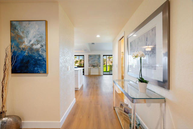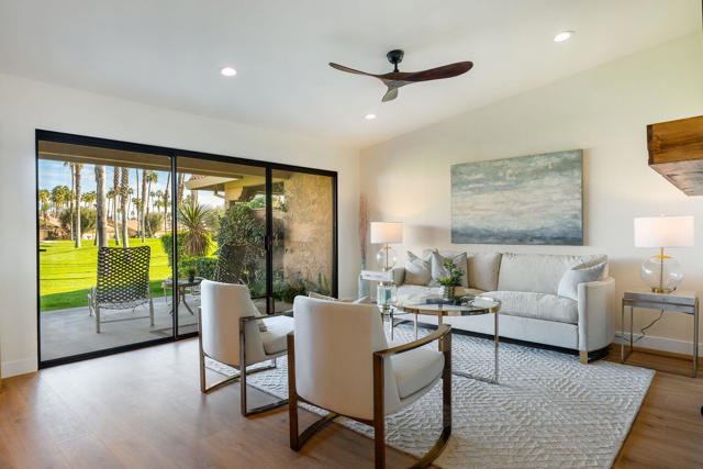 Welcome to this beautifully remodeled 3-bedroom, 2-bath condo, offering picture-perfect golf course views and effortless desert living. From the moment you enter, you'll appreciate the bright, open-concept layout paired with stylish, modern finishes throughout--truly a move-in-ready home designed to be enjoyed right away.Recent upgrades include fresh interior paint, new luxury vinyl plank flooring, and a completely remodeled kitchen featuring new cabinetry and sleek quartz countertops. Both bathrooms have been transformed with spa-like, newly tiled walk-in showers. Additional updates include new outlets and recessed lighting throughout, creating a fresh, vibrant, and inviting atmosphere. This desirable floor plan also offers direct access to the garage from the interior laundry room for added convenience.Step outside and enjoy being just moments from a sparkling community pool that feels like your own private retreat. Furniture and decor are negotiable, allowing for a seamless transition into your new home.Located within the gated Chaparral Country Club, residents enjoy 24-hour security and roving patrols, along with access to the private 'Lil Monster' 18-hole executive golf course. The community boasts an active social calendar, a Clubhouse with a full-service restaurant and lounge, a fully equipped fitness center, two tennis courts, and 12 pickleball courts. HOA dues include cable TV and internet, exterior maintenance and painting, roof maintenance, care of 21 pools and spas, street maintenance, 24/7 security, and trash service.Ideally situated near fine dining, luxury shopping, theaters, entertainment venues, and world-class attractions such as the Indian Wells Tennis Garden, PGA West Golf, Acrisure Arena, Coachella and Stagecoach festivals, and Palm Springs International Airport--this is desert living at its finest.
