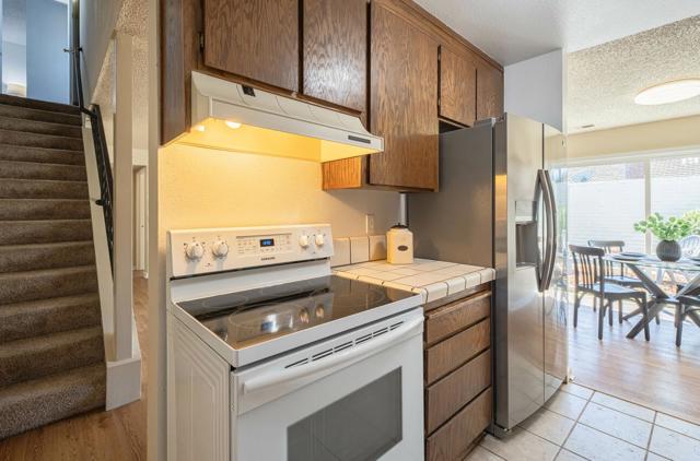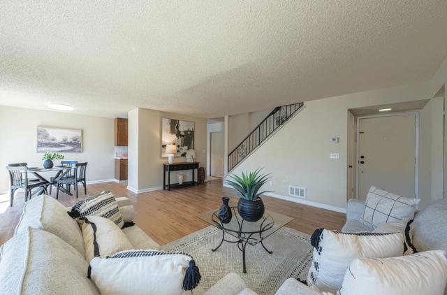 Welcome to your perfect blend of comfort and convenience! This charming 3-bedroom, 2-bath home features a spacious living room with a cozy fireplace ideal for relaxing or entertaining. Slider doors off both the living and dining rooms make it effortless to enjoy that coveted indoor/outdoor lifestyle. The private primary suite, tucked away on the second floor, offers a peaceful retreat, while the 2-car garage comes complete with built-in shelving for all your storage needs. Located directly across from Rico Rossi Parkway and Greenbelt with a wonderful fitness trail just steps from your front door. You will enjoy a prime location with easy access to parks, paths, and the best of the neighborhood.