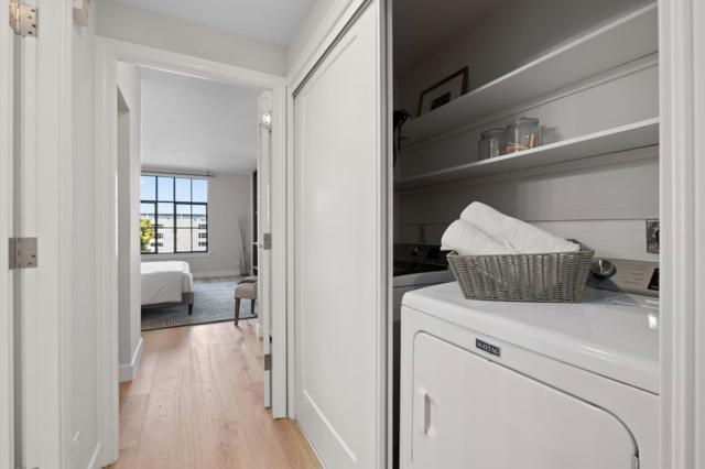 Welcome to Gramercy on the Park. Discover this newly renovated 1-bedroom, 2-bathroom unit located across from Central Park in San Mateo. This spacious condominium features brand new hardwood floors, stainless steel appliances, freshly painted interiors, and updated bathrooms with beautifully tiled floors. Enjoy the convenience of an in-unit washer & dryer and a covered patio offering expansive views of the Bay and San Francisco skyline. The Gramercy Building provides premium amenities, including 24-hour front entrance security, a fitness center with a sauna and hot tub, a sparkling pool in a landscaped courtyard, and a parking garage. With nearby restaurants, shops, transportation, and parks, this unit is ideally located for convenience and luxury. Dont miss the chance to own in one of San Mateos most sought-after buildings. ** LEASE TO OWN OPTION AVAILABLE WITH INCENTIVES ** Ask for details.