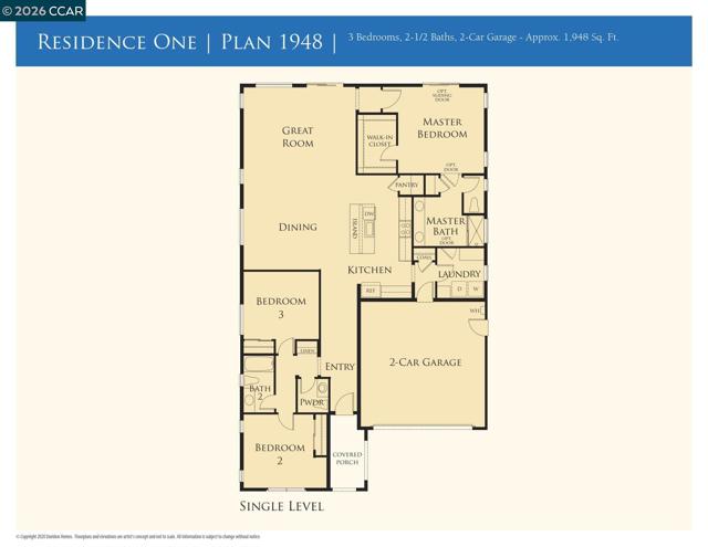 NEW PRICE REDUCTION! QUICK CLOSE OF ESCROW AND BROKER COMMISSION on this BRAND-NEW SINGLE-STORY home at The Hills at Park Ridge by Davidon Homes! Featuring Brentwood Schools, this beautiful Residence One encompasses three bedrooms and two and one-half baths in approximately 1,948 sq. ft. The open and inviting great room includes stylish and durable LVP flooring, sliding doors to the rear yard, dining area, and gourmet kitchen with Whirlpool appliances, quartz countertops, marble backsplash, recessed panel wood cabinetry, walk-in pantry, and expansive casual dining/prep island. An elegant primary suite features a spacious walk-in closet and beautifully appointed bath with double vanity and glass enclosed shower. Located just minutes from BART and Hwy 4 in the Brentwood Union School District, this incredible home offers affordable luxury in one of Antioch’s most commuter-friendly locations. Residents enjoy close proximity to shopping, dining, parks and recreation, and the popular Streets of Brentwood. Includes over $25K in designer upgrades and builder options! ASK ABOUT OUR SPECIAL FINANCING INCENTIVES!