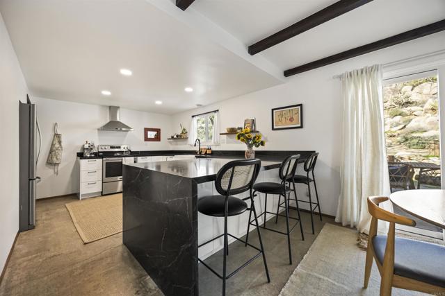 Discover your magical desert retreat—perfect as a primary residence or a turnkey Airbnb. Large lot over1 ACRE. This beautifully remodeled 2-bedroom, 2-bath home sits on a large, ultra-private lot with breathtaking natural desert views and no neighbors behind you. Inside, thoughtful upgrades shine throughout, including a brand-new kitchen and bathrooms, Soapstone countertops with an antibacterial finish, recessed lighting, fresh interior paint, and warm, attractive concrete flooring. Additional improvements include new appliances, new Milgard windows and exterior sliding doors, and fully remodeled bathrooms featuring a new tub and shower surround with custom glass doors. The expansive outdoor space is designed for true desert living, offering three distinct areas to relax and entertain: unwind by the fire pit, enjoy your own horseshoe court, or dine al fresco under the wide desert sky with a dedicated BBQ area. There is also ample room for a future hot tub or pool. The driveway has been professionally graded and finished with new gravel for added functionality and curb appeal. Ideally positioned near Pioneer town and local shops, bakeries, and grocery stores, the home enjoys a peaceful, elevated setting surrounded by majestic rock formations, open space, and serene natural beauty. Designed for seamless indoor-outdoor living, most rooms capture stunning desert oasis views, while the attached garage adds everyday convenience. This home is a true sanctuary—private, stylish, and ready to enjoy.