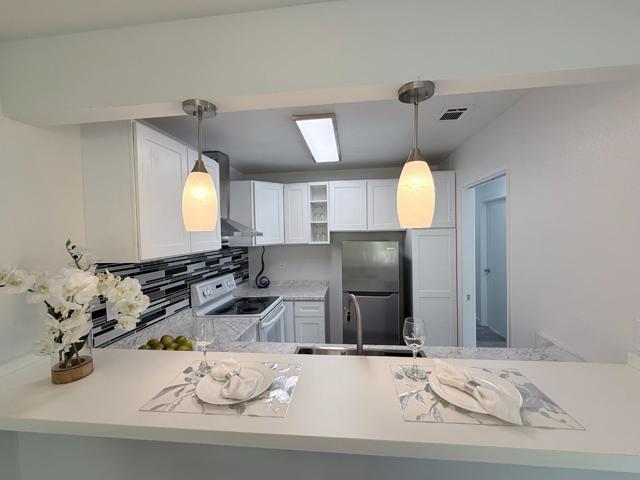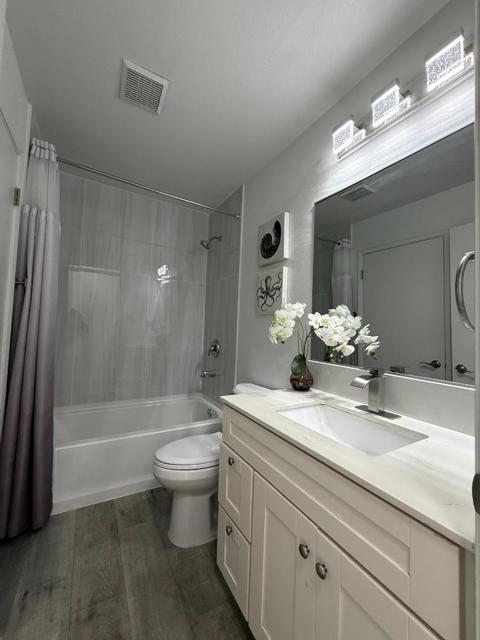 Step into this beautifully renovated 2-bedroom, 2-bath condo just under 1,000 sq ft in one of South San Joses most convenient locations. Thoughtfully updated throughout, this home offers modern laminate flooring, a brand-new kitchen with breakfast bar, new cabinetry, and stylish fixtures all designed for everyday comfort and effortless living. The inviting living room features a cozy fireplace and opens to a private balcony, creating the perfect space to unwind or enjoy your morning coffee. Freshly renovated and move-in ready youll be the first to enjoy the upgrades. Located within walking distance to the vibrant Village Oaks shopping and dining area, near Kaiser Permanente, and with easy access to Highways 85 and 101, this home combines lifestyle and location. Community amenities include a pool, in-unit laundry hookups, and a designated covered parking space. Comfort, convenience, and a fresh new start all in one place. Some interior photos have been virtually staged to help illustrate the potential of the space. Original, unaltered photos are included in the MLS photo gallery