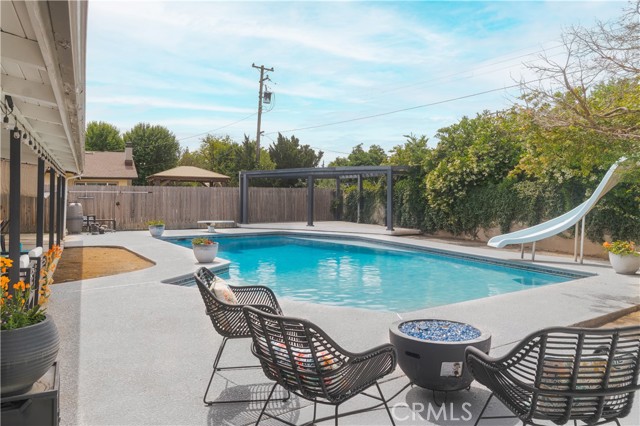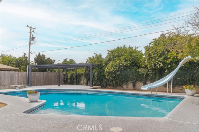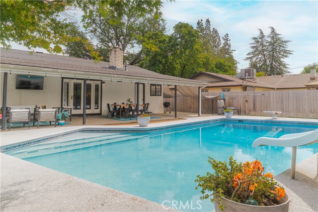 Welcome to an exceptional residence where refined design meets modern sophistication, including an attached Casita. Situated on an expansive 12,750 sq ft lot, this beautifully reimagined 4-bedroom, 3-bathroom estate offers approximately 2,938 sq ft of thoughtfully curated living space in one of Fresno’s most desirable settings. A grand entrance with striking double doors opens to an impressive open-concept interior, remodeled in 2021. The heart of the home is a designer kitchen, showcasing a generous center island, stainless steel finishes, and seamless flow into the main living and dining areas—ideal for both elevated entertaining and everyday living. Spa-inspired bathrooms and elegant flooring throughout further enhance the home’s cohesive, modern aesthetic. The property’s outdoor spaces are equally captivating. A front courtyard and welcoming porch create a serene introduction, while the expansive front grounds feature lush green lawn and mature trees, offering both beauty and privacy and great curb appeal. The backyard is a perfect relaxation or entertaining setting complete with a sparkling pool, an oversized covered patio for year-round enjoyment, and accent lighting that transforms the space into an evening retreat. Adding remarkable versatility is the attached, fully remodeled Casita with its own private entrance. Complete with a kitchenette, 3/4 bath, and dedicated mini-split A/C system, with approximately 540 sqft of living space, this space is ideal for multigenerational living, guest accommodations, or a discreet income opportunity. This is a rare offering that combines scale, style, and flexibility—delivering an elevated living experience both inside and out.