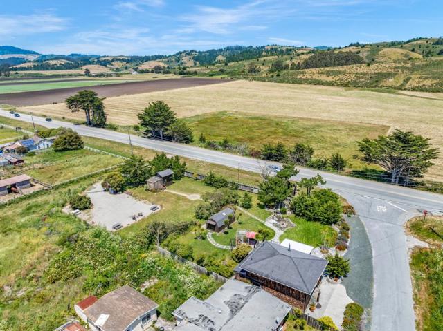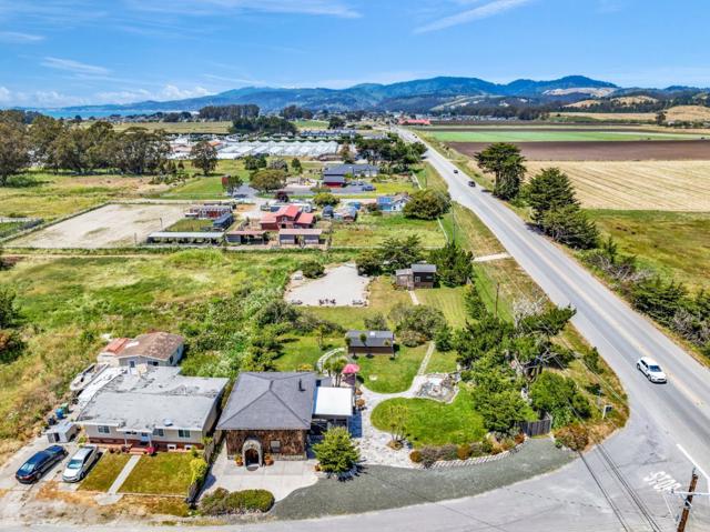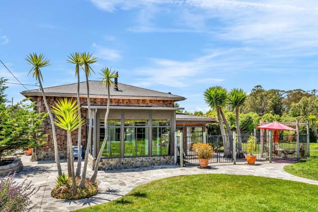 Step into a one of a kind coastal retreat with handcrafted detail and creative design. Set on nearly half an acre west of Hwy 1, this Half Moon Bay gem is surrounded by farms, open space, and mountain views, just a 15 minute walk to the beach. A stone arched entry opens to a warm interior with exposed beams, skylights, and a dramatic suspended fireplace. Sun filled rooms flow to a glass wrapped dining room and patios overlooking lush gardens, a hand crafted waterfall, and entertaining areas. Flexible living includes main level bedrooms, finished upper rooms, and a detached studio with deck, ideal for guests, art, or a home office. A huge detached storage shed and bonus cottage onsite provide additional value and possibilities. Generous parking and room to expand complete the property. Rare in setting, charm, and potential, this is a coastal haven ready for its next chapter.
