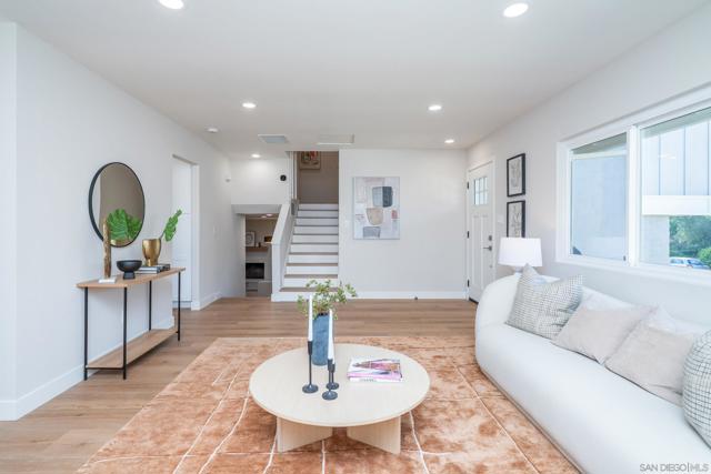 Set on a generous lot with gated RV parking and exciting ADU potential in the heart of highly coveted University City. This tri-level residence has been thoughtfully redesigned, expanded, and refined inside and out to create a home that feels cohesive, comfortable, and move-in ready. Offering four bedrooms, 2.5 baths, and 1,868 square feet of expanded living space, the home balances flexibility with timeless design. At the center of the home is a beautifully reimagined kitchen with quartz countertops, all-new stainless steel appliances, and a convenient seating peninsula overlooking the expansive grassy backyard and patio. The permitted oversized family room expansion is huge, with its own wet bar and beverage/wine refrigerator, cozy fireplace, and downstairs half-bath, offering a retreat where everyone can relax, play, or unwind. Every ceiling has been smoothed and finished with recessed lighting throughout. Fresh interior and exterior paint in carefully selected designer tones gives the home a sharp yet timeless look. San Diego's enviable climate gets even better here, with a quiet whole-house fan, an upgraded HVAC system, and a dedicated mini-split air conditioner in the expanded family room. The result is a home that stays naturally comfortable and efficient year-round. It’s all economically powered by a 28-panel solar system, fully owned, providing immediate energy savings with no lease or monthly payment. The primary suite offers peaceful seclusion, facing the quiet backyard, complete with a wall to wall mirrored wardrobe closet and a beautifully remodeled bath featuring a spa-inspired walk-in shower. Two additional bedrooms also include mirrored wardrobe closets, while the oversized fourth bedroom with its own private walk-in closet provides flexibility for guests, a home office, or multigenerational living. The secondary bath has been fully remodeled with a new vanity and tub shower combination, continuing the home’s thoughtful and cohesive design throughout. The oversized lot includes rare RV parking, room for a pool and significant ADU potential, offering options for extended family, guest accommodations, or future expansion. And if the garage didn’t offer enough space, the oversized shed/outbuilding is perfect for storing all your toys, workshop/garden center, or finish off as an external office. Ideally located near top-performing University City High and Marie Curie Elementary, plus neighborhood shopping, and popular dining, this home is also just minutes from Westfield UTC, the Trolley at UTC, the Golden Triangle employment hub, and the beaches of La Jolla and North County. Don’t miss it!