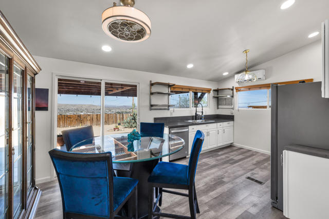 Panoramic show stopping views from every window in this absolutely adorable home! Location, Location, Location this is the one! South side of Joshua Tree sits on an elevated large lot filled with charming tressures from the past, unique & impeccable landscaping both front & backyard. Corrugated steel front fencing! Covered back patio, completely fence. 360 Views from your backyard. Stunning!! Completely re-done. Beautiful wood flooring thru-out, freshly painted, custom windows & coverings, Kitchen has all new appliances, natural gas stove.. Master bath has been re-done cobble stone shower with sunk in tub, custom closet door. Guest bath also features cobble stone shower & new vanity. New roof just 2 yrs old. 3 mini splits ac/heater units just installed. New water heater, Double car garage electric with remote. Looking out your front door, you see the stunning Coyote Hole Mountain. Fabulous hiking steps from this home. Located just 2 miles from the entrance to Joshua Tree National Park. Full RV hook up. Extra-large lot maintained. So much more to see. This one is special and a must see!Easy to show on short notice. Please give me a call!