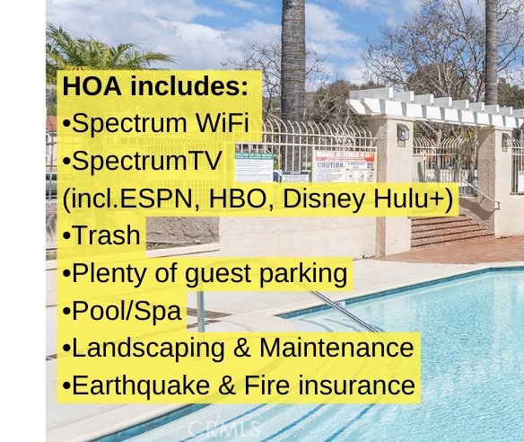 LARGE & FRESHLY painted 2 story townhome at ‘Village on the Green’ in the highly sought after Wood Ranch neighborhood with open layout and sweeping views of mountains and Wood Ranch Golf Course beyond enjoyed from the large private back terrace! Wide Foyer, high ceilings & lots of storage (including a walk in closet, under-stairs closet, and built-ins). Bright spacious kitchen with stainless steel appliances & double sink, granite countertops throughout. Fireplace in open living/dining area - well maintained central heat/air. Guest bathroom tucked away & IN-UNIT Laundry room with ample storage. Cascading stairs with skylight above the upstairs hall. Primary bedroom with vaulted ceiling, views, built-ins, en-suite bathroom, double Kohler sinks, oval soaking tub. Private entrance patio with gate and direct access into the private 2 car garage with oversized water heater and EV charging outlet. Lovely landscaping & grassy areas, large gated pool & spa area. Just down the street from Starbucks, CVS, restaurants and shops, as well as the Ronald Reagan Presidential Library, and Rancho Madera community park with 2 playgrounds, tennis, sand volleyball, and basketball courts and more. Also nearby schools, shopping, dining, several golf clubs, baseball, hiking, and easy access to freeways and natural beauty — INCREDIBLE VA ASSUMABLE loan (with a high balance and 4.75 rate) makes this an amazing opportunity for a VA qualified buyer.