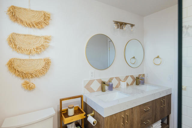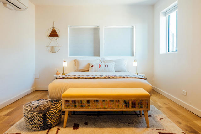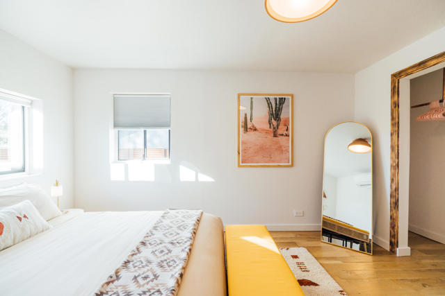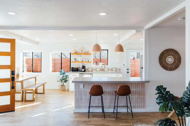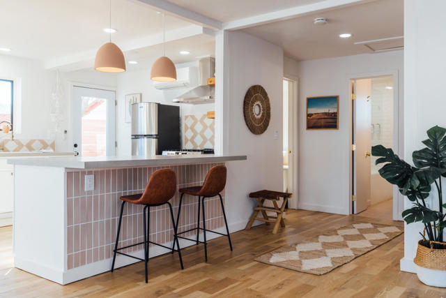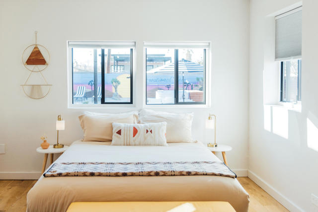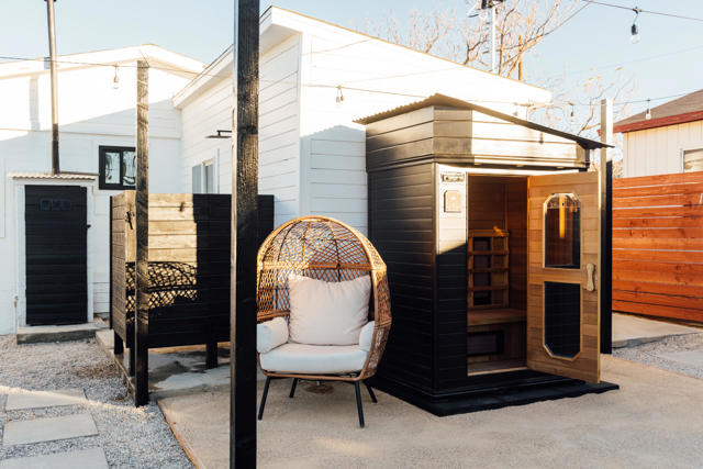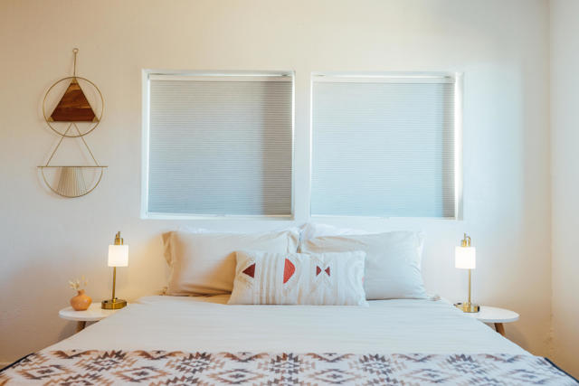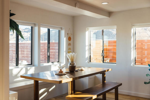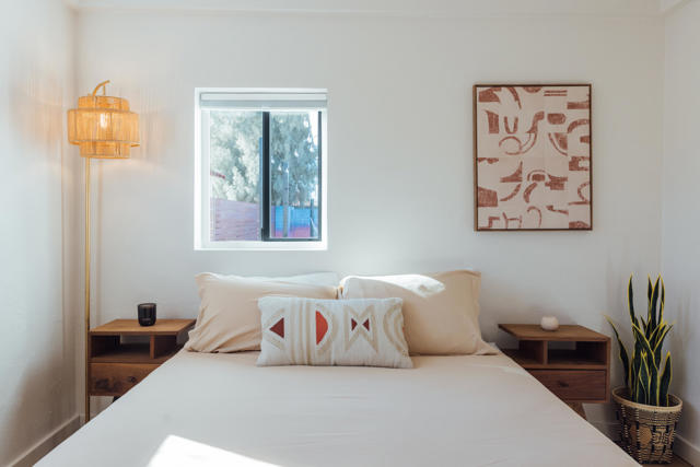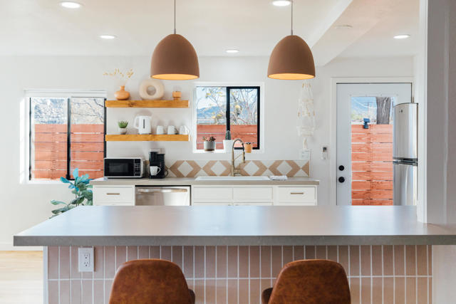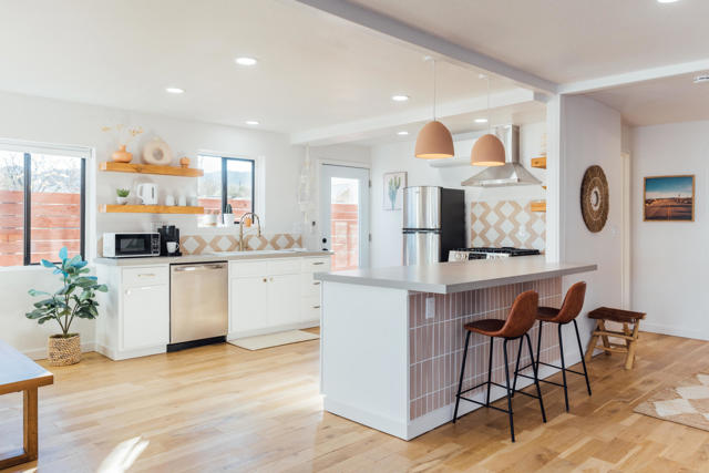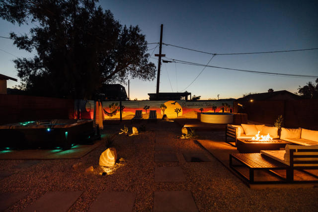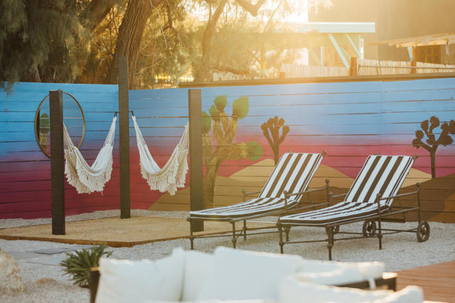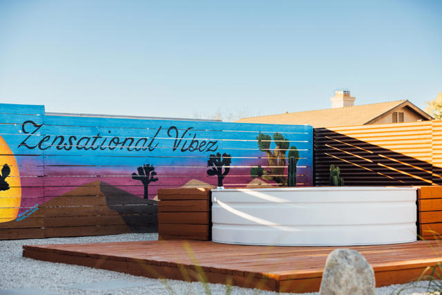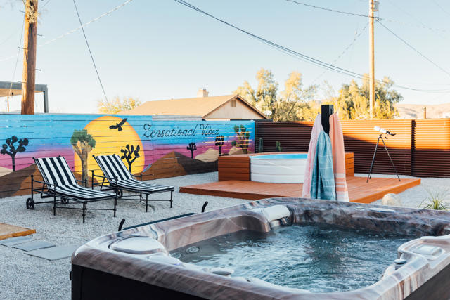 Located just minutes from downtown Joshua Tree and the west entrance of Joshua Tree National Park, this beautifully curated 2-bedroom, 1-bath home offers effortless desert living with a true resort-style feel. Fully furnished and thoughtfully equipped, it's move-in ready whether you're looking for a full-time residence, a weekend escape, or a turnkey rental opportunity.Inside, the home feels open and inviting, with natural light illuminating each space. The living area flows seamlessly into the updated kitchen, creating a welcoming environment for both quiet mornings and lively gatherings. Two bedrooms feature queen-size beds and generous closet space, while the spa-like bathroom offers a soaking tub, double vanity, and a clean, modern aesthetic.It's the backyard that truly elevates this home. Fully fenced and exceptionally private, it feels like your own personal hideaway. Cool off in the cowboy pool, unwind in the sauna or jacuzzi, or rinse off under the outdoor shower. As the sun sets, gather around the fire pit or fire up the grill for dinner under the stars. Hammocks and lounge areas invite you to relax beneath the desert sky, while vibrant murals add a playful pop of color. A dedicated laundry and storage room adds everyday convenience without compromising the serene outdoor space.Mountain views greet you from the front porch, while downtown shops, restaurants, and galleries are just a short walk or bike ride away. Stylish, fully equipped, and ready to enjoy, this Joshua Tree retreat offers flexibility, privacy, and lifestyle, all in one unforgettable setting.