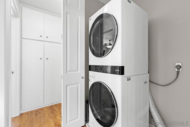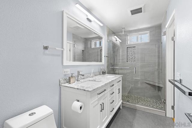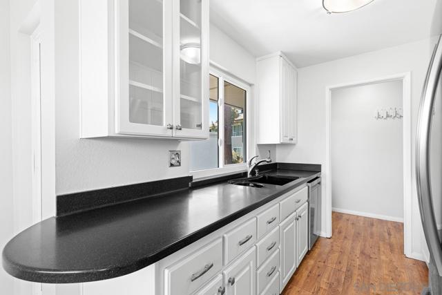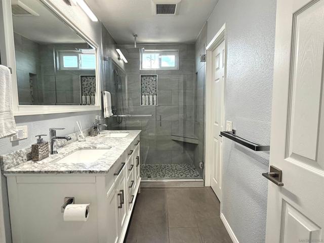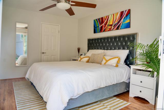 If you prize being close and central to nearly all San Diego has to offer but in a quiet and peaceful neighborhood with natural breezes coming off Mission Bay, look no further! This upgraded corner unit on the hill boasts tons of natural light and great views, with two attached parking spots and an additional storage room underneath the unit. Close to the beach, downtown, several great neighborhoods for food and entertainment, and work hubs, the 5/8/163 freeways will get you to where you need to go and fast! You’ll find a fully renovated bathroom with a custom-tiled shower and flooring, waterfall shower experience, a bidet, and a quartz double-sink vanity. The upgraded dual-pane windows, new front door, and fresh paint adds to the experience and keeps the unit comfortable yearlong! Nearly all appliances have been upgraded by the sellers, including but not limited to a spacious Samsung French door refrigerator, KitchenAid stainless steel tub dishwasher, and a top-of-the-line LG Washer/Dryer tower. It’s hard to beat this location and the bright, airy feel when you step inside that makes you feel integrated with the beautiful San Diego outdoors. Don’t just take our word for it, come see why you’ll want to call this townhouse your home!