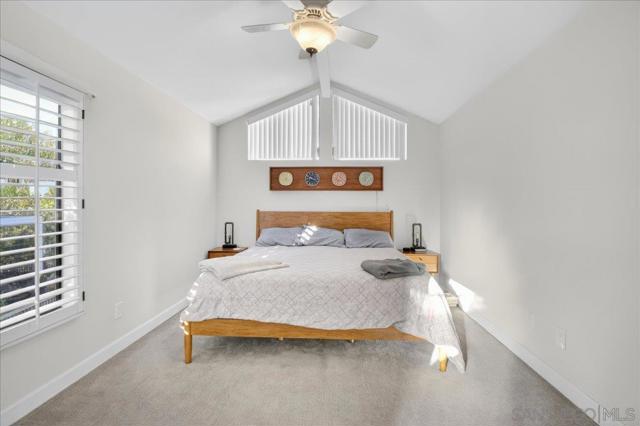 One of the best kept secrets in San Diego! Located just below USD, University Canyon West boasts abundant foliage, canyon breezes, and peace/quiet, plus all the amenities you expect. Featuring two primary suites plus indoor laundry, this floorplan is one of the most popular and in a prime spot in the community with virtually no need for A/C (tho it was installed in 2019) due to airflow throughout when windows are opened. Epoxy garage floor, extra fridge, ample storage, newer remodeled kitchen, private backyard and side yard featuring abundant flowering plants and fruit trees. A gardener’s paradise! Pride of ownership is apparent!