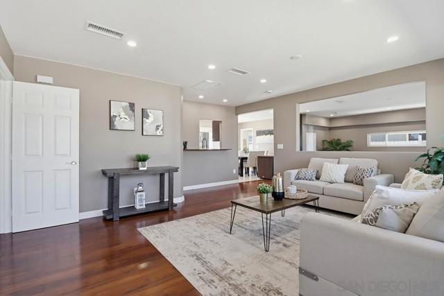 Welcome to this stunning, fully renovated single-level home in the highly desirable Rolando Village neighborhood. This newly rebuilt turnkey residence offers the perfect blend of modern comfort, thoughtful upgrades, and timeless charm. Nearly every major component has been replaced, including a brand-new roof, new HVAC system, updated plumbing, and a fully upgraded 200-amp electrical panel. Inside, you’ll find luxury laminate wood flooring, recessed lighting throughout, in-wall speaker wiring, hardwired exterior security cameras, and a whole-house fan for enhanced energy efficiency. Additional upgrades include dual-pane windows, a skylight in the kitchen, and a dedicated laundry room with washer and dryer. The beautifully remodeled kitchen features new cabinetry, quartz countertops, and all-new appliances, making it ideal for everyday living and entertaining. The inviting family room is anchored by a cozy fireplace, while the separate living room provides additional space to relax or host guests. Both bathrooms have been fully renovated with modern finishes. With RV parking and potential for an ADU, this property offers excellent opportunities for additional income, multigenerational living, or expanded workspace. Enjoy the best of urban convenience with a suburban feel. This home is ideally located near San Diego State University, shopping, parks, schools, recreation centers, and major freeways, with easy access to nearby La Mesa. Don’t miss your chance to own a fully upgraded home in one of San Diego’s most charming and centrally located neighborhoods.