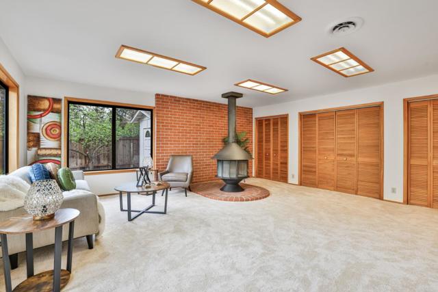 Santa Clara's highly sought after desirable Mariposa Gardens neighborhood, served by in-demand Sutter Elementary. This home is bathed in natural light and showcases beautifully refinished hardwood floors, elegant crown molding and a well-designed floor plan ideal for everyday living and entertaining. The gourmet kitchen features a central island, gas stove, Corian countertops, pantry and space for a refrigerator plus a separate freezer or wine refrigerator. The expansive family room is a warm, inviting space with a cozy free standing wood fireplace and wall-to-wall built in shelving. The private primary suite, located at the rear of the home, is a true retreat with three spacious custom closets, drawers, mirrored doors, double sink vanity, private toilet room and excellent storage. A secondary bedroom with a Murphy bed provides flexible space for an office/guests. Recent updates include fresh interior paint, new toilets & new vinyl plank flooring. Additional features include ceiling fans, central vacuum, wall insulation, copper piping, low maintenance backyard with deck, mature fruit trees, drip system and storage shed. Just steps from Mary Gomez Park & close to Central Park Library, Stans Donuts, shopping, major commute routes & top tech campuses. Enjoy Santa Clara low utilities