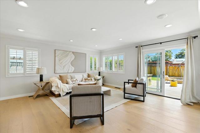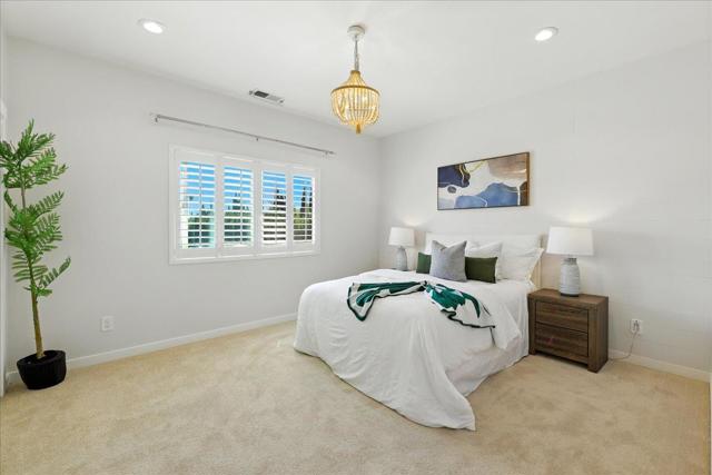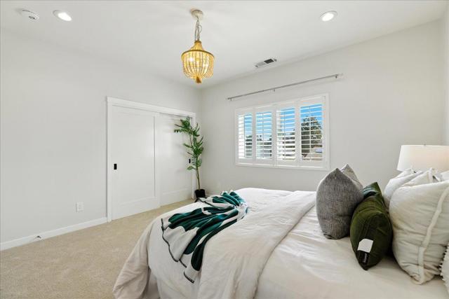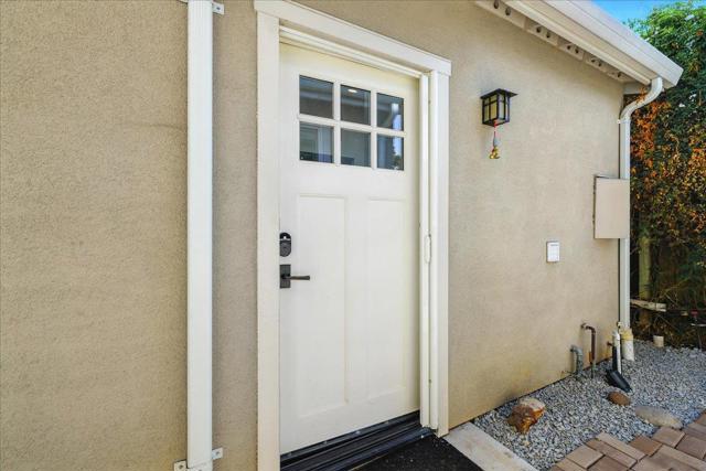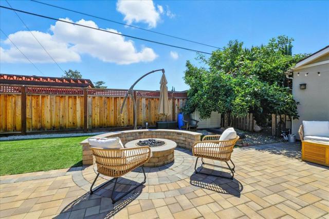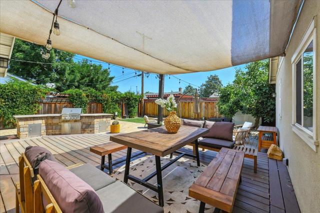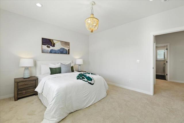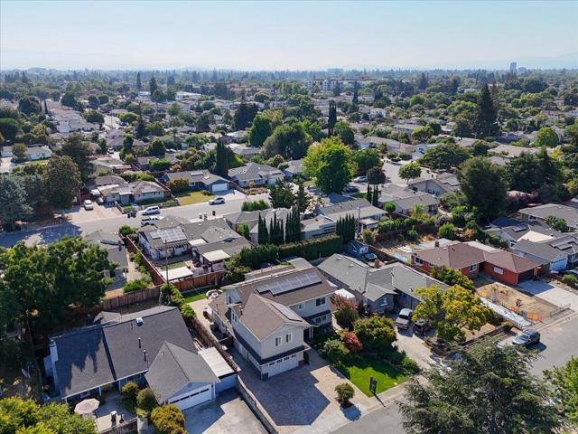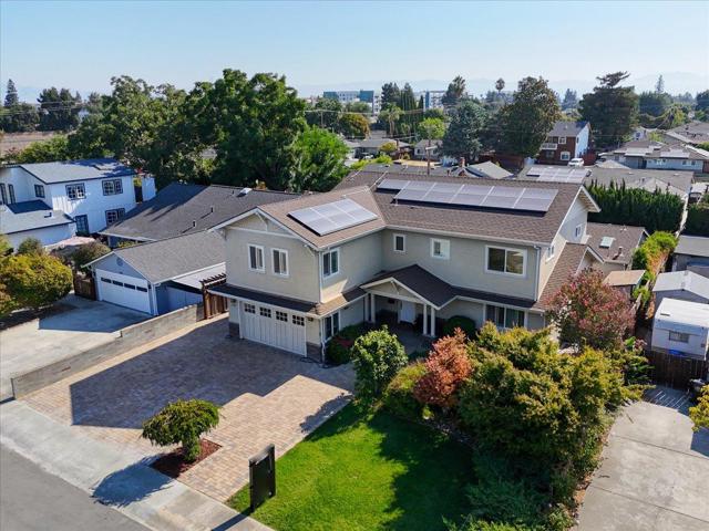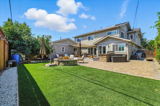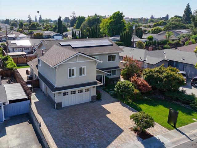 A 2-story home rebuilt in 2012, with a detached ADU is nestled in one of the most desirable neighborhoods. Located near Santana Row, Westfield Valley Fair, Mitsuwa Market, & Apple Park. Close to top rated private school: Harker. With easy access to Hwy 280, 880, & San Tomas Expressway, as well as premier shopping & dining. High ceiling, hardwood floors,& recessed lighting. The kitchen is equipped with stainless steel appliances, including a refrigerator, oven, microwave, range hood, dishwasher,& wine cooler, granite countertops, a two-tier kitchen island, white cabinetry, and a dry bar. Downstairs bedroom has ceiling fan, & a delightful carpeted playroom with a built-in rock wall, closet & mudroom bench. Upstairs, the primary suite has high vaulted ceilings, accent wall, chandelier, walk-in closet, & a luxurious bathroom with dual-sink vanity, marble countertop, frameless glass shower enclosure, jacuzzi tub, & water closet. Additional features include solar panels, a Tesla EV charger, dedicated laundry area, & a Swisstrax-finished 2-car garage with six large cabinets. The landscaped front yard features concrete brick pavers, while the backyard is designed with a raised deck, built-in gas BBQ, & firepit. This is ready to welcome you home.